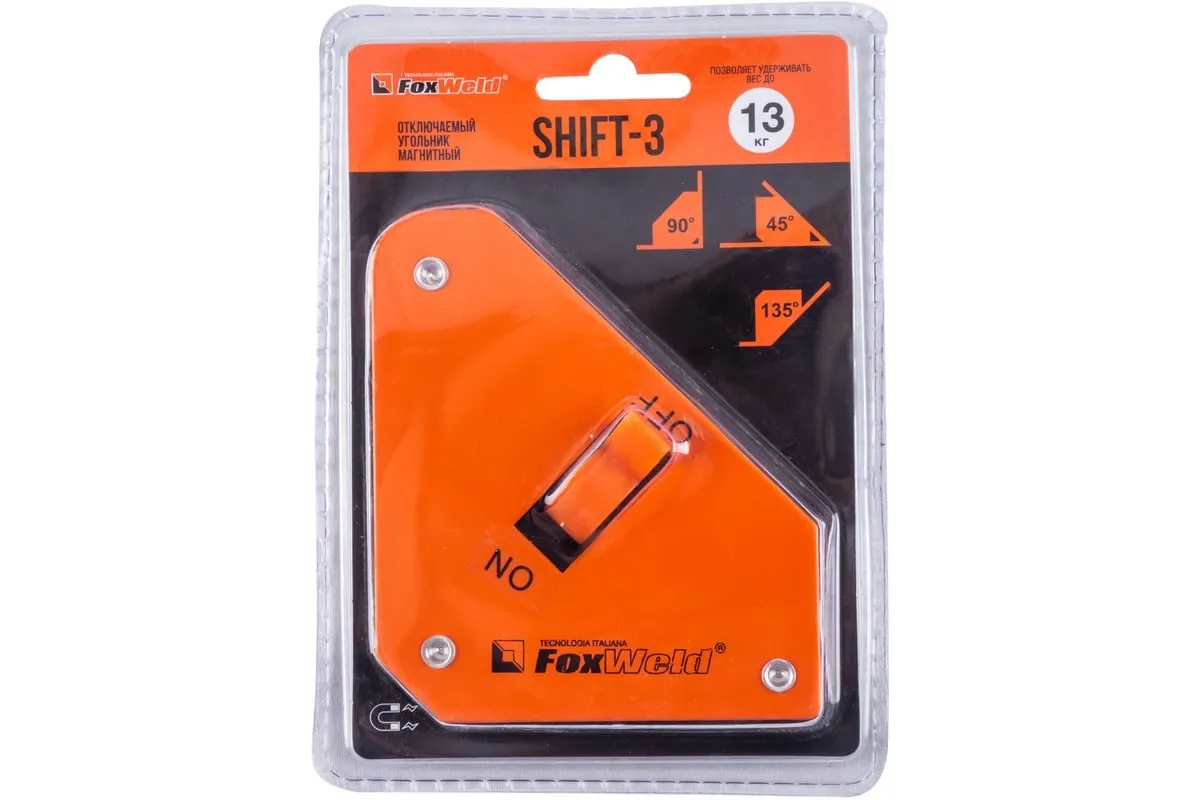 Отключаемый магнитный угольник Foxweld SHIFT-3 до 13кг 5387 позволяет проводить точное выставление углов в процессе проведения сварочных работ, монтажа стальных конструкций, используется как элемент удержания деталей. Данные приспособления дают возможность осуществлять процесс сварки одному рабочему. Могут быть использованы также для крепления элементов в процессе резки, для предотвращения падения частей конструкции.