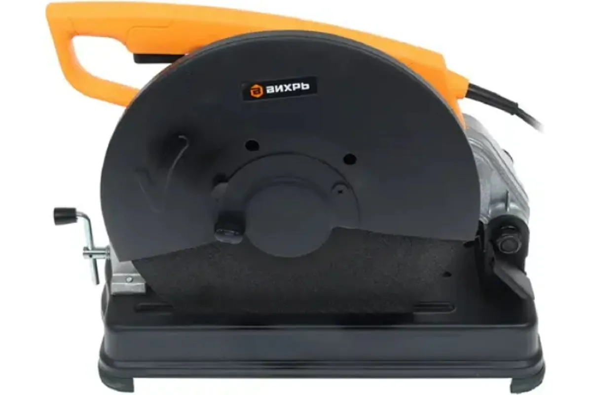 Отрезная пила Вихрь ОП-355/2500 имеет специальные ножки, позволяющие устойчиво располагать ее на любой поверхности. Удобная D-образная рукоятка предназначена для надежного хвата. Компактное и безопасное хранение и транспортировку обеспечивает фиксатор пилы в опущенном состоянии. Для замены оснастки предусмотрен гаечный ключ, входящий в комплектацию.