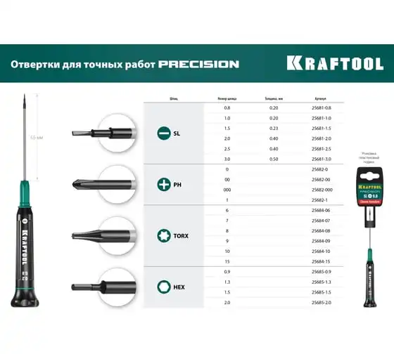 Отвертка для точных работ KRAFTOOL 25685-1.5, предназначена для выполнения прецизионных работ в электронике и электромеханике. Три зоны вращения: быстрая, точная, силовая. Высокоточный наконечник.