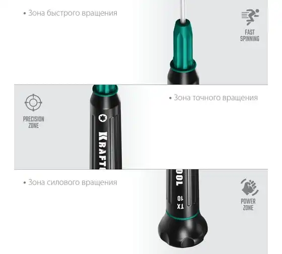 Расширяющаяся рукоять для удобства работы Рельефное кольцо препятствует скатыванию Дополнительная накладка у основания стержня для большей надежности