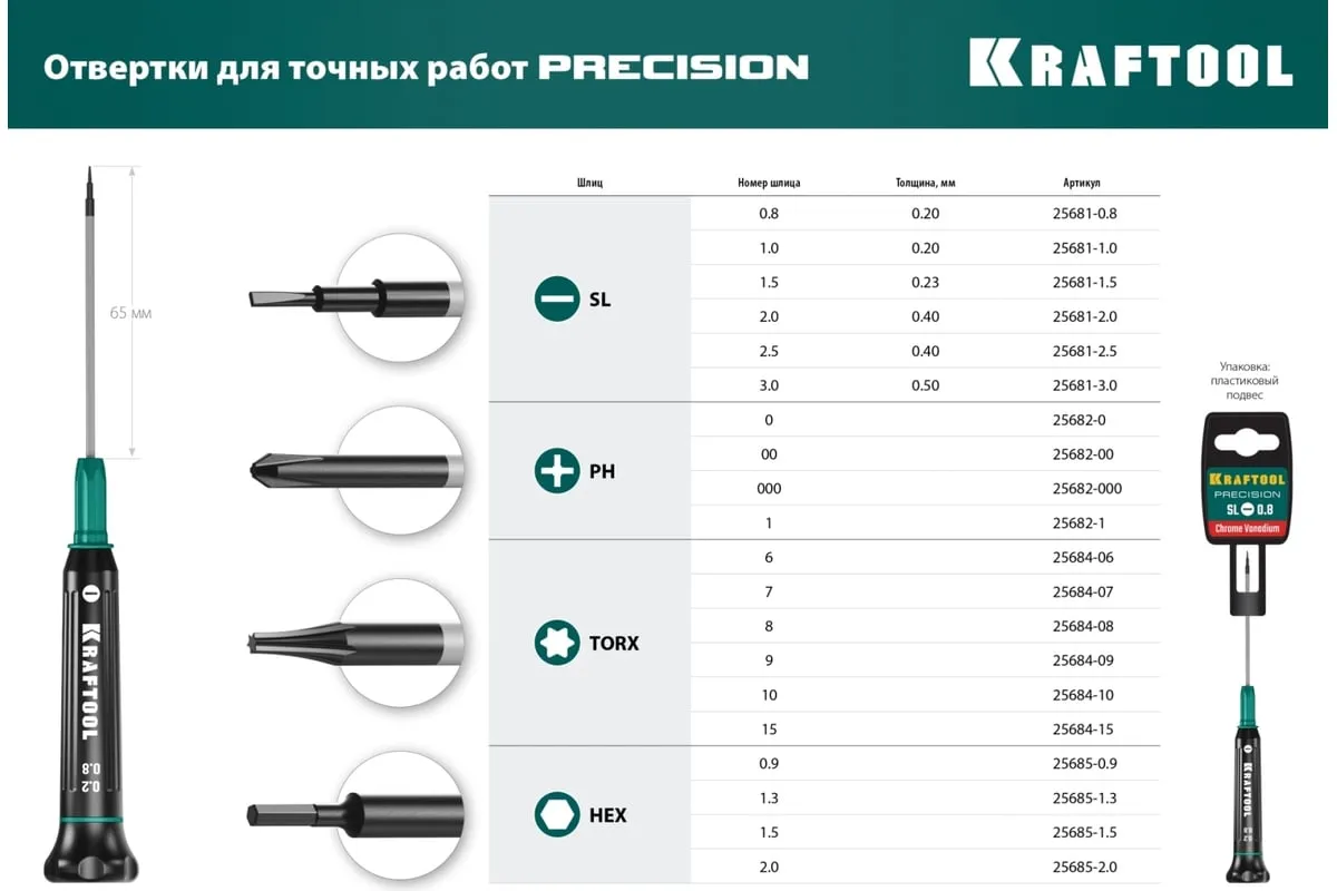 Отвертка для точных работ Kraftool Precision TX9, 25684-09