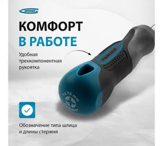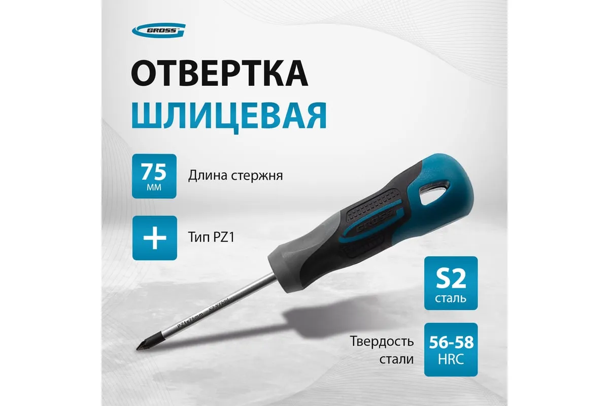 Отвертка GROSS PZ1x75 мм 12156 предназначена для откручивания и закручивания резьбовых соединений. Максимальный крутящий момент достигает 1 Нм.