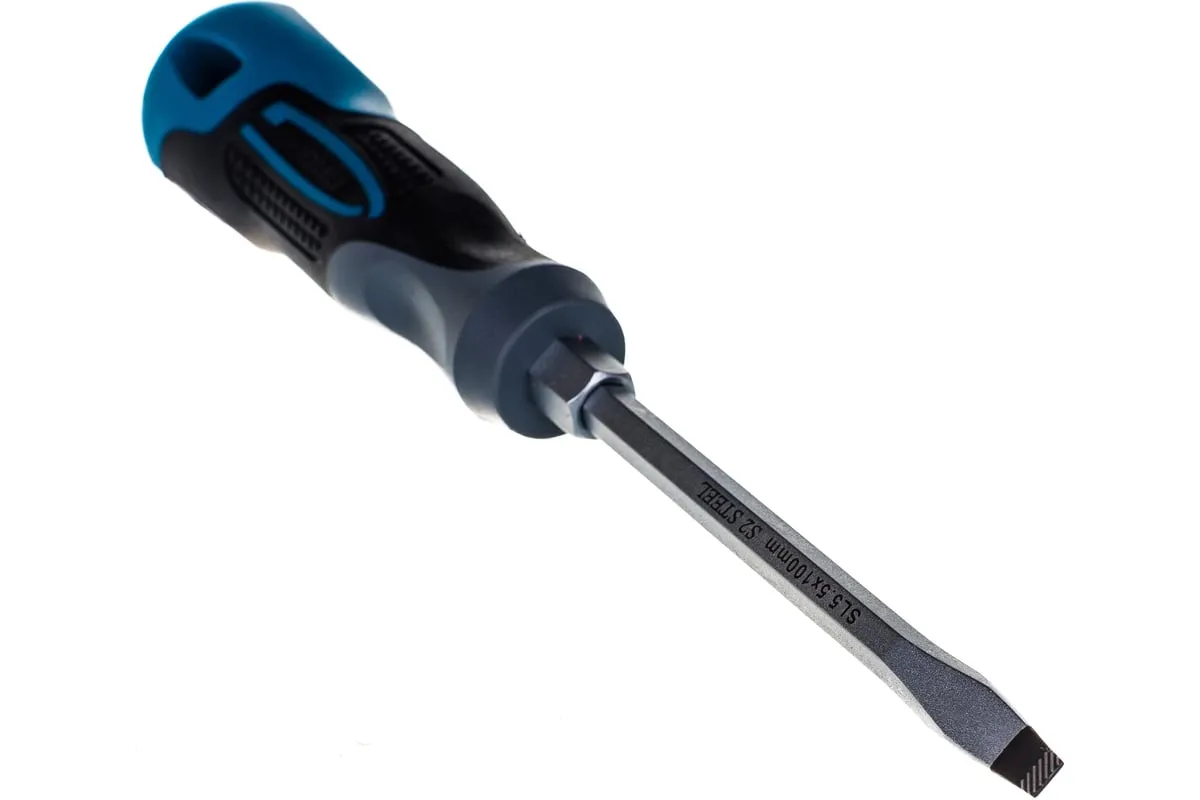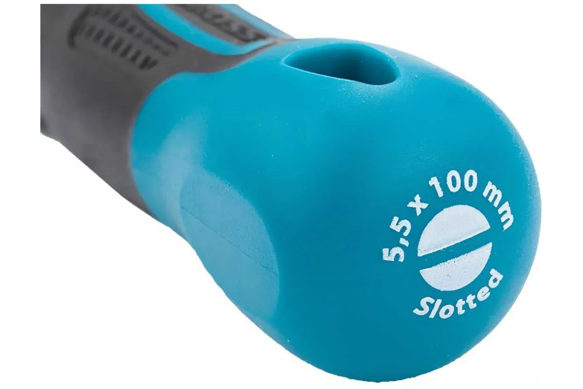 Отвертка GROSS SL5.5x100 мм 12110 предназначена для работы с резьбовыми соединениями, имеющими плоский шлиц. Максимальный крутящий момент затяжки достигает 5.5 Нм.