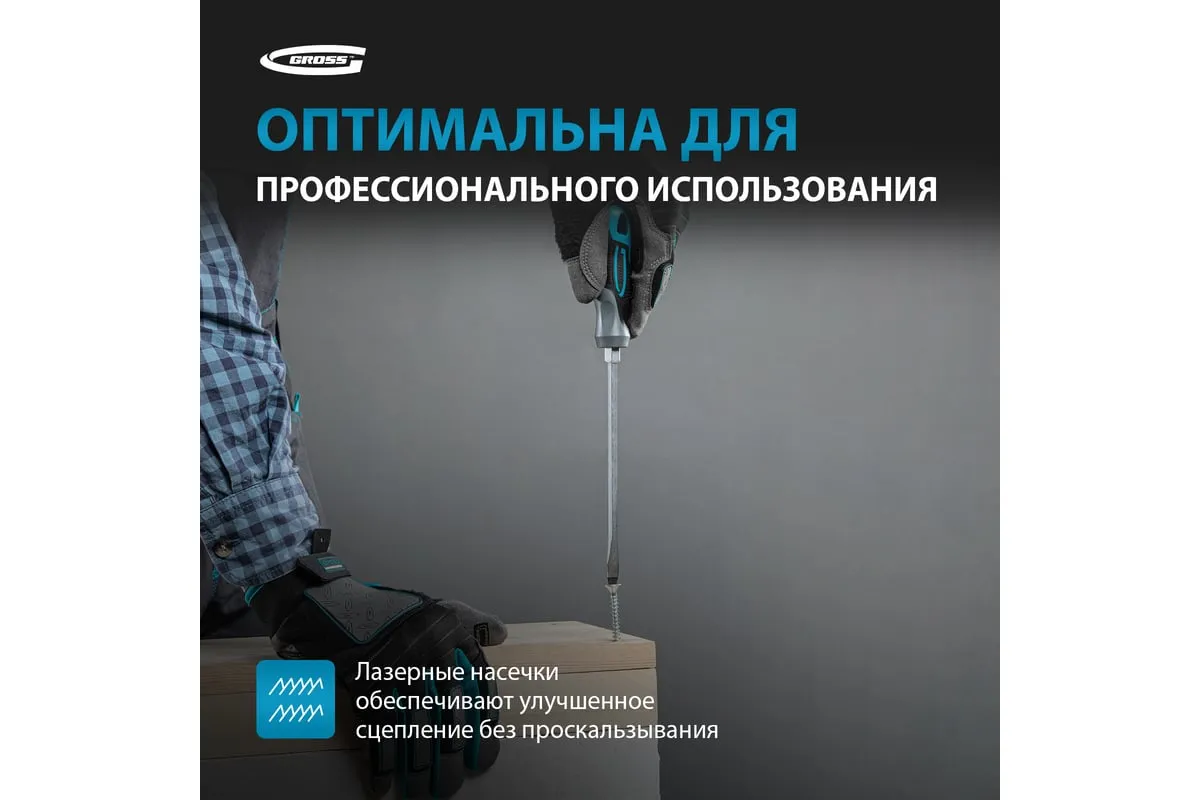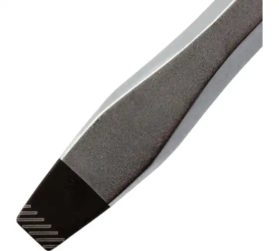 Благодаря насечкам на жале увеличивается трение между отверткой и шлицом крепежа, что препятствует его повреждению.