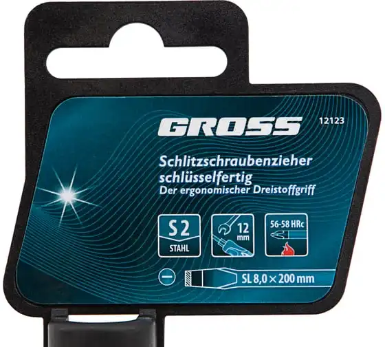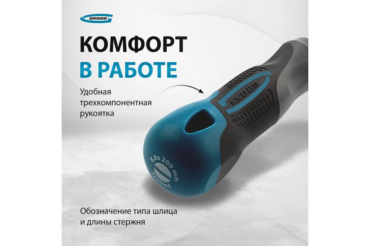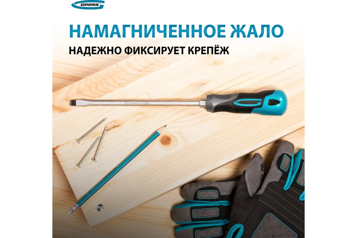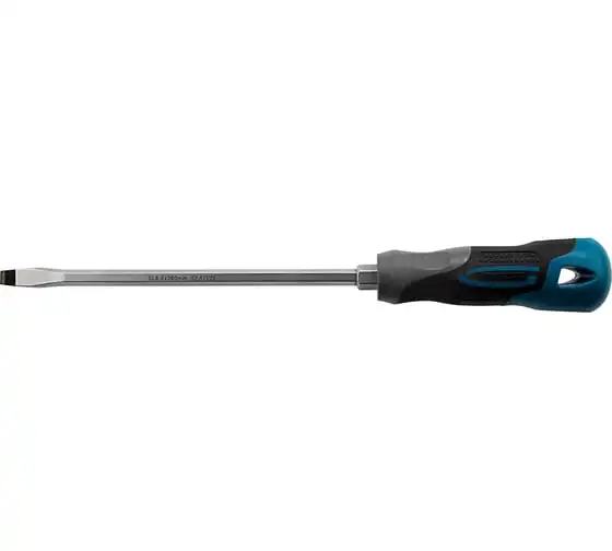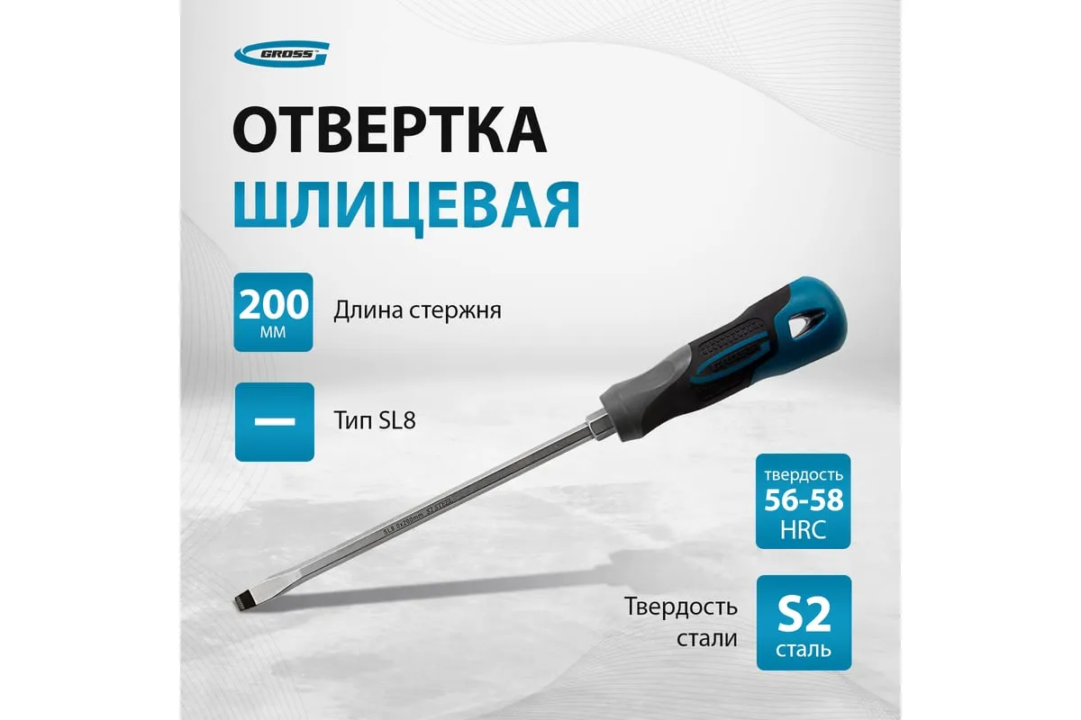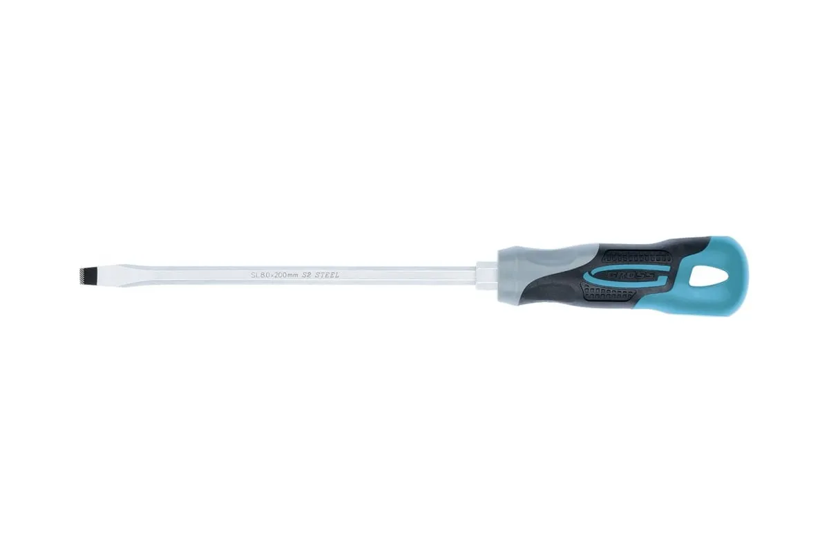 Отвертка GROSS SL8.0x200 мм 12123 предназначена для работы с резьбовыми соединениями, имеющими плоский шлиц. Максимальный крутящий момент затяжки достигает 11.5 Нм.