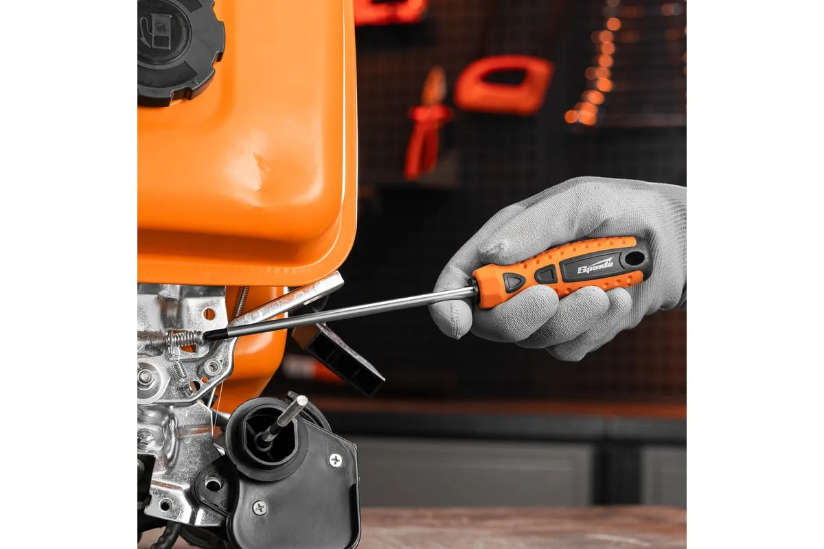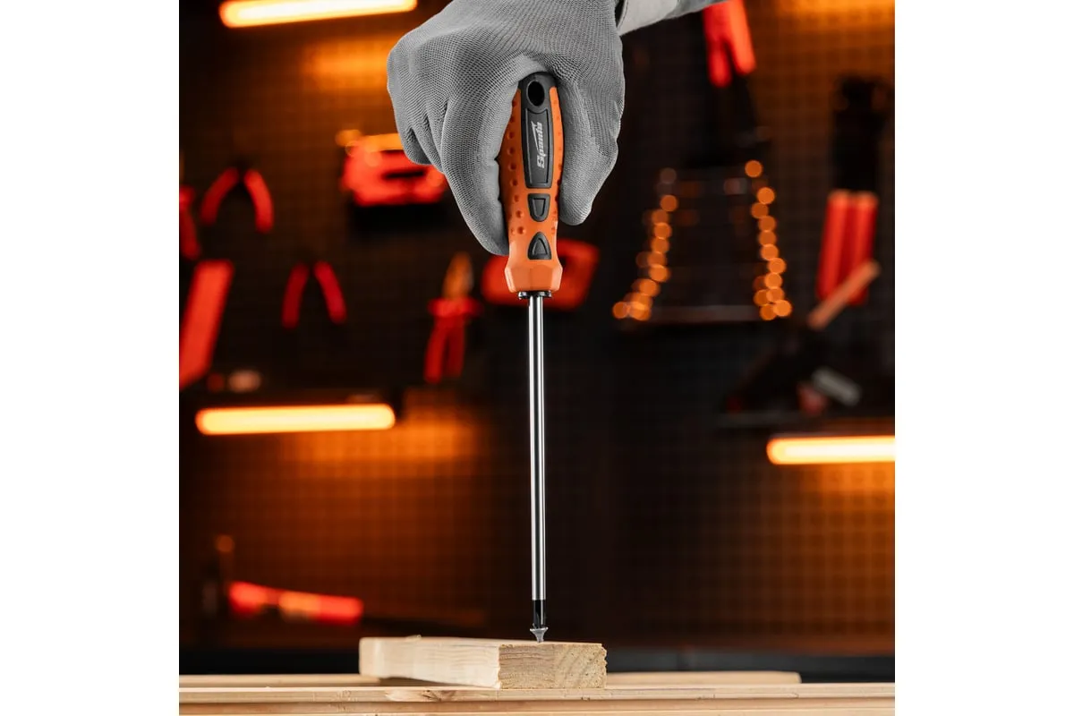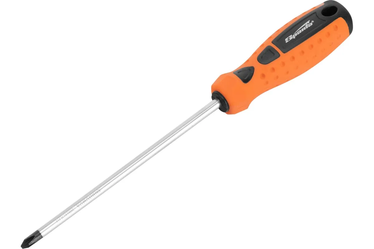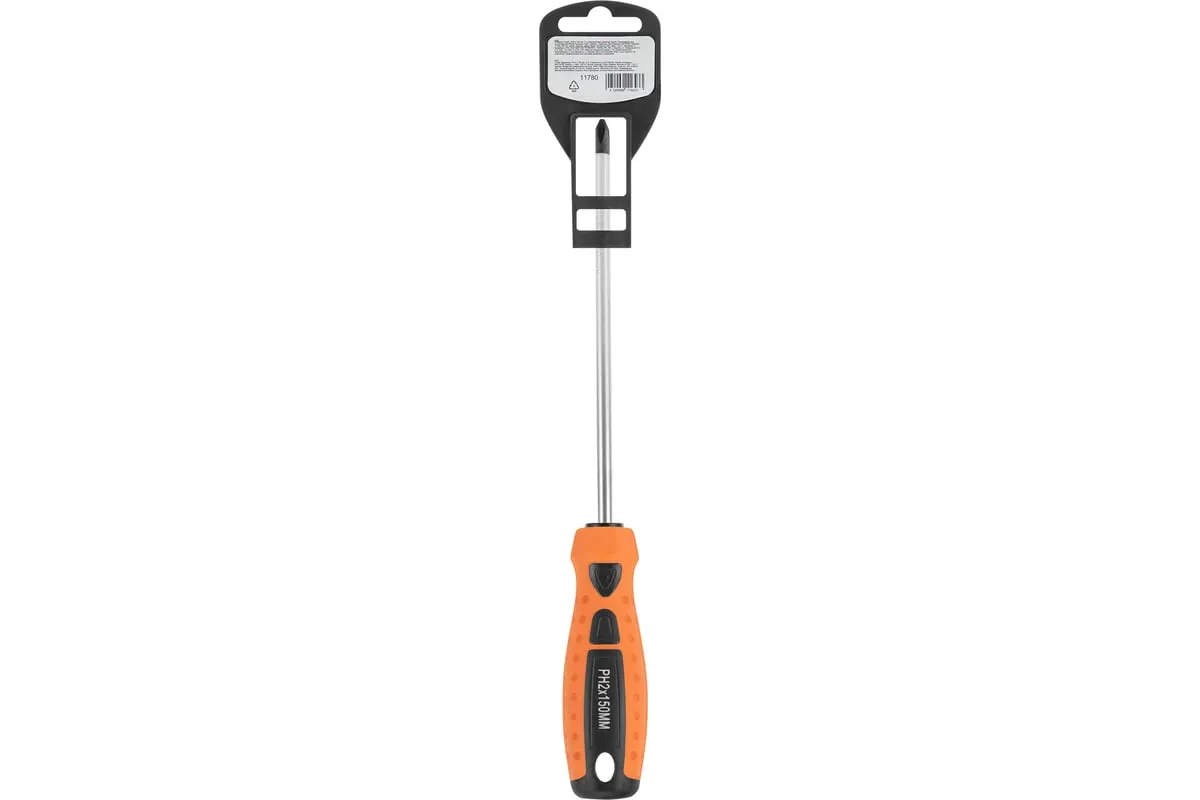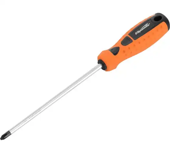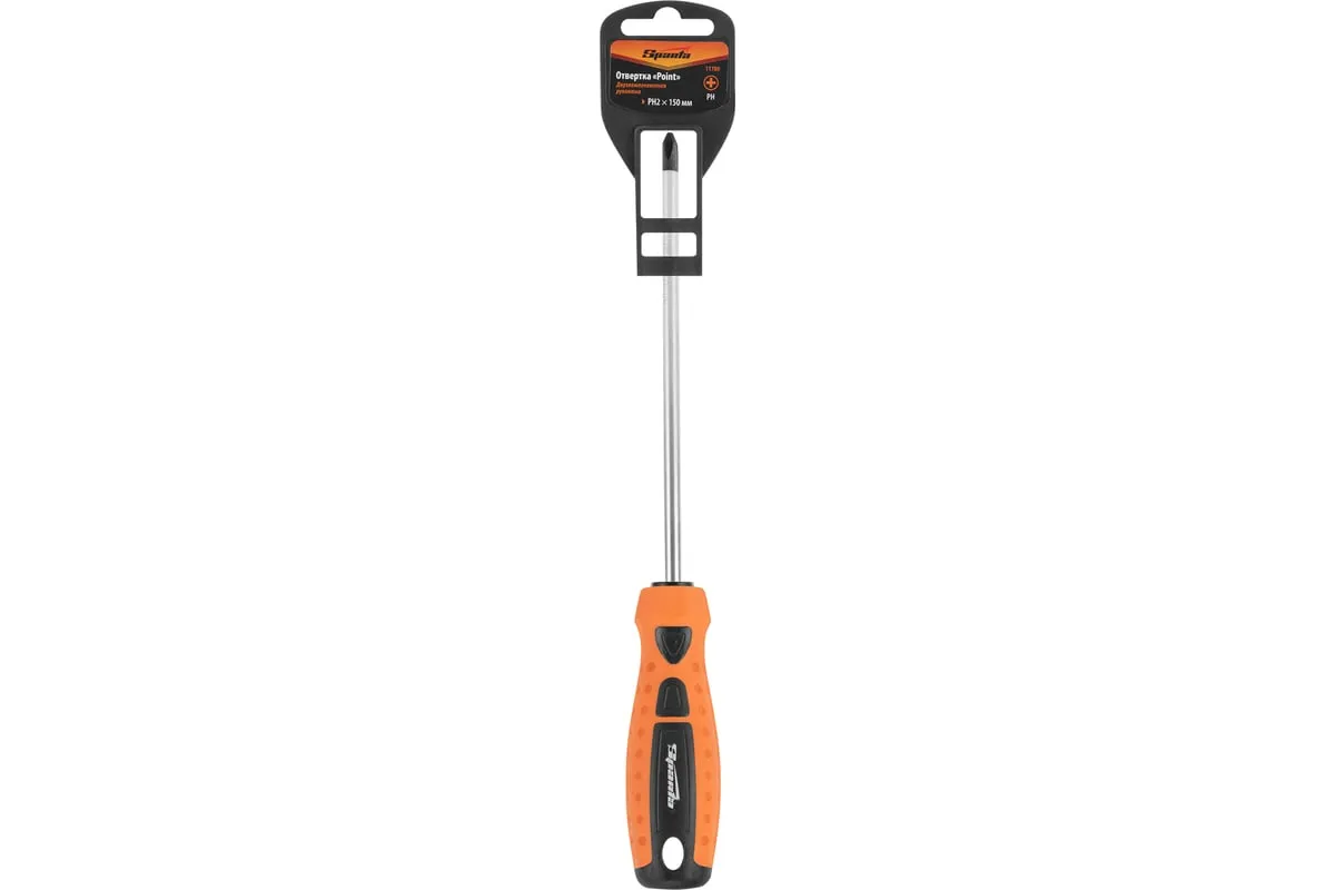 Отвертка Ph2х150мм, CrV, 2-х компонентная рукоятка SPARTA Point 11780 используется при сборке, ремонте и обслуживании различных механизмов, агрегатов, конструкций и т. д., где используются винты с крестовым рабочим профилем Phillips. Изделие имеет длинное стальное жало высокой твердости. Отвертка не боится коррозии, устойчива к износу.
