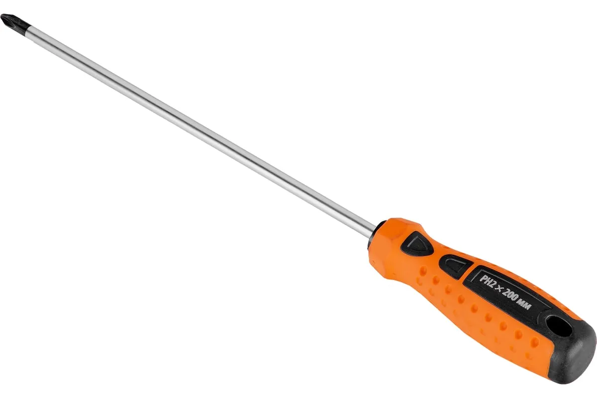 Отвертка Ph2х200мм, CrV, 2-х компонентная рукоятка SPARTA Point 11779 - монтажный ручной инструмент для работы с винтовыми соединениями. Изделие оснащено удобной по форме рукояткой и длинным стальным жалом с антикоррозийным покрытием и намагниченным наконечником.