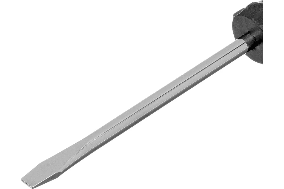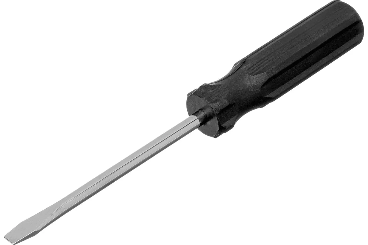 Отвертка Sparta 13206, SL6 х 100 мм, из углеродистой стали, с черной пластиковой рукояткой, предназначена для бытового применения. С ее помощью можно произвести монтаж или демонтаж крепежных элементов со шлицами Slotted. Отвертка имеет стержень 100 мм для работы в углублениях и с легкодоступным крепежом.