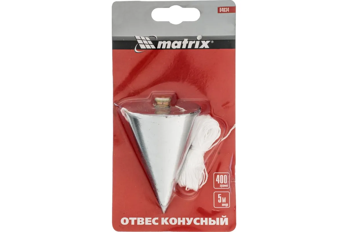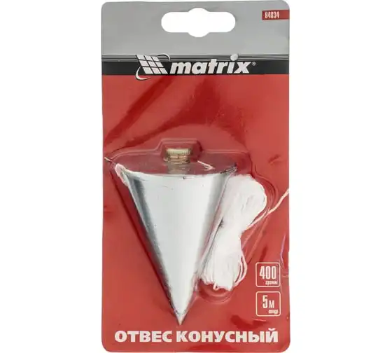 Конусный отвес Matrix 84834 массой 400 г, в комплекте со шнуром 5 м, используется для определения ровности или наличия отклонений у вертикальной плоскости. Корпус в форме конуса способствует отличной центровке. Отвес увеличенного веса 400 г удобен в ходе наружных работ, т.к. меньше подвержен колебаниям от воздействия ветра.
