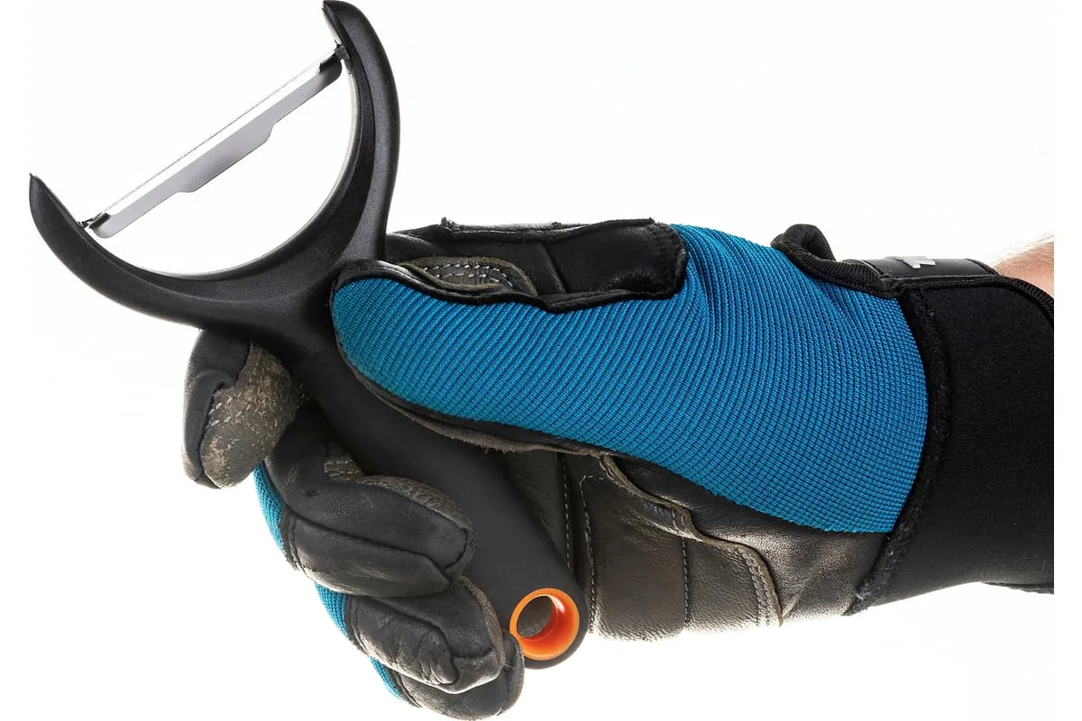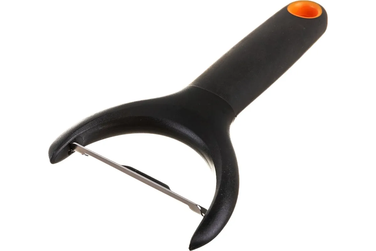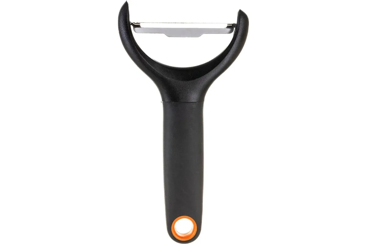 Овощечистка Fiskars FF 1016122 можно хранить вертикально. Форма безопасна для пальцев. Позволяет быстро нашинковать овощи.