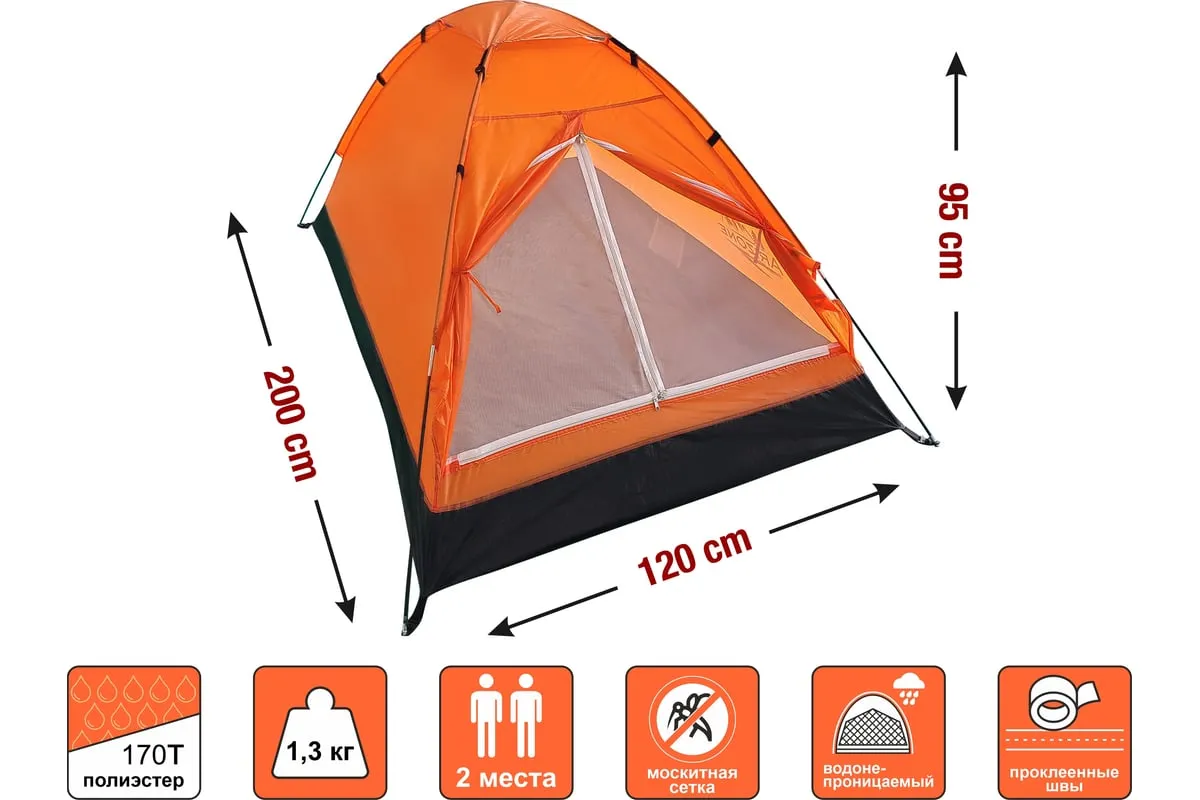 Палатка Arizone Coyote-2 28-274505 - универсальная двухместная палатка с одним входом и противомоскитной сеткой. Благодаря проклеенным швам палатка надежно защищена от попадания влаги. Тент выполнен из полиэстера 170Т.