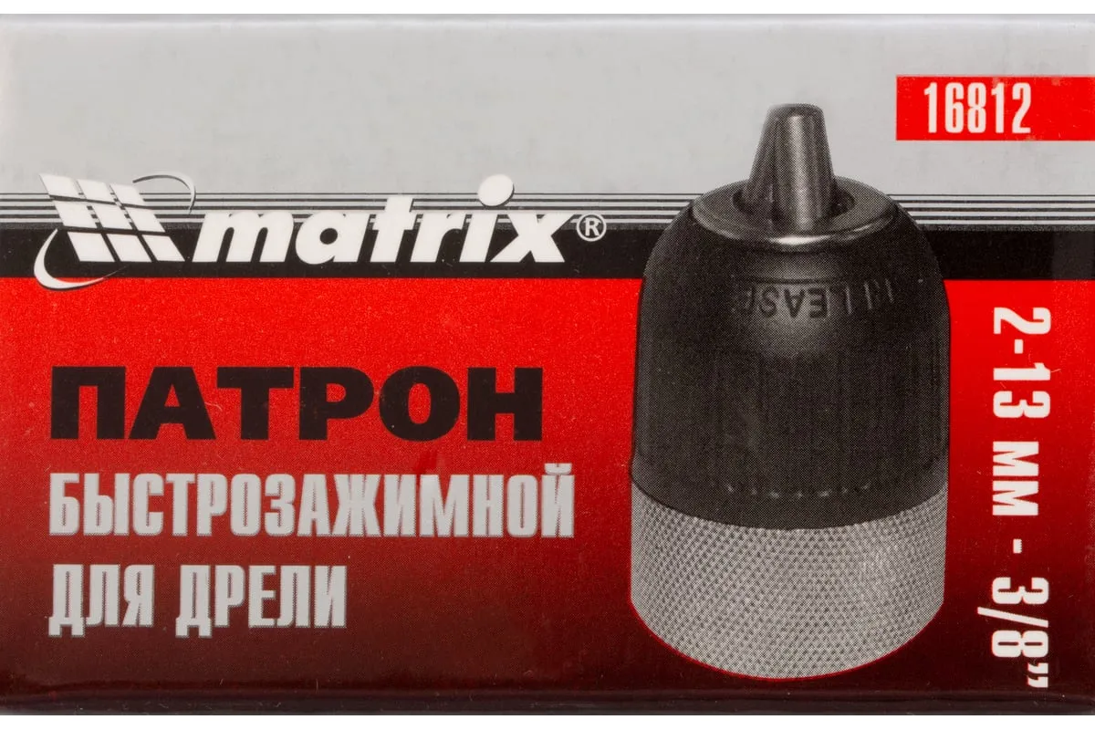 Быстрозажимной патрон для дрели Matrix 16812 с посадочным размером 3/8 дюйма подходит для фиксации сверл диаметром 2-13 мм. Оптимален для бытовых и полупрофессиональных работ, когда требуется частая смена оснастки.