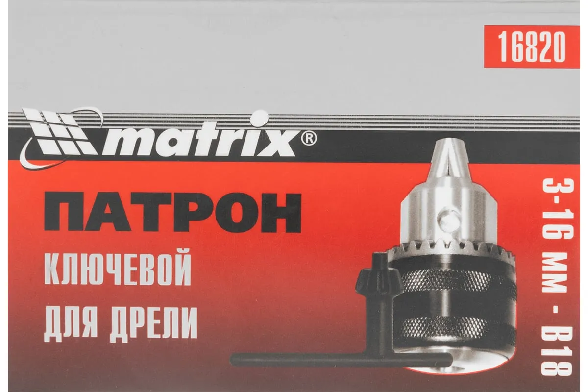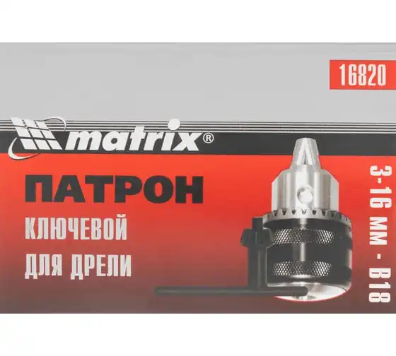 Ключевой патрон Matrix 16820 с посадочным диаметром B18 подходит для фиксации оснастки диаметром 3-16 мм в дрели. Высококачественное исполнение позволяет использовать его для профессиональных целей.