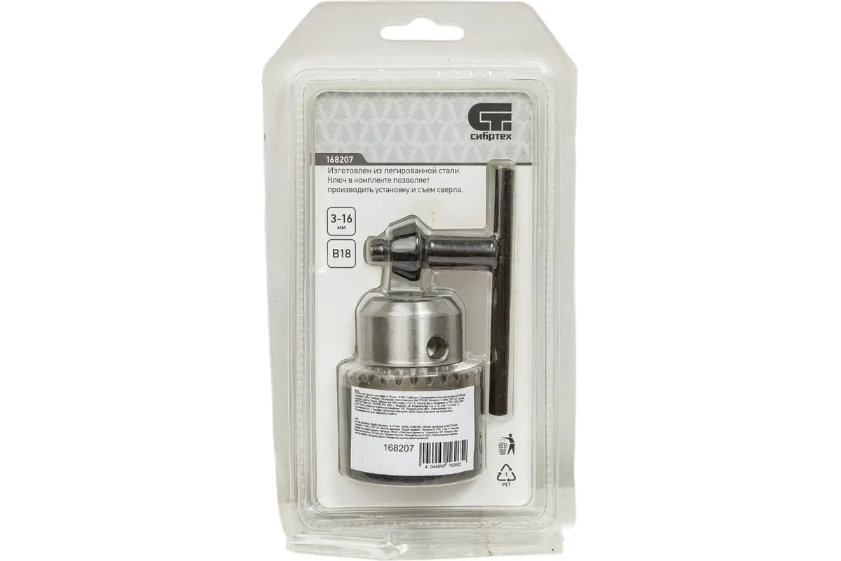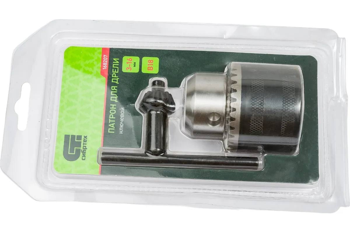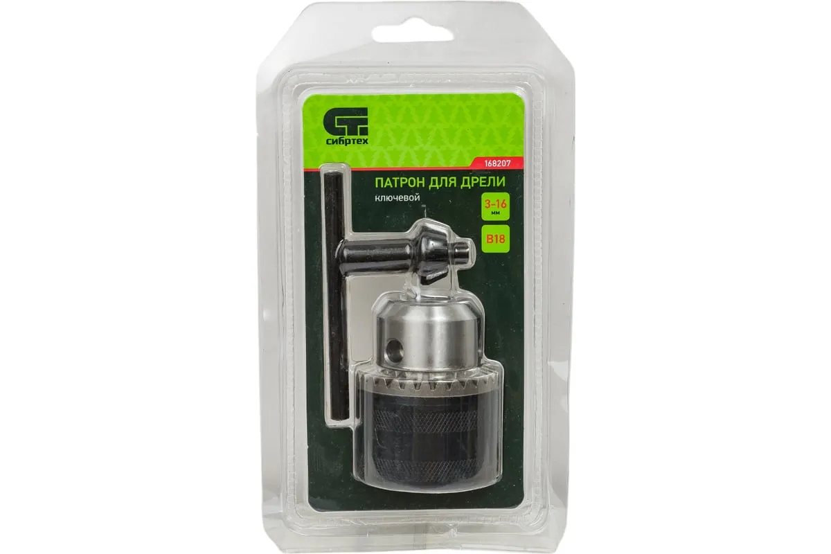 Ключевой патрон для дрели Сибртех 168207, тип соединения В18, обеспечивает надежную фиксацию сверл с хвостовиками 3-16 мм для осуществления сверлильных работ. Будет полезен в быту и для решения профессиональных задач.