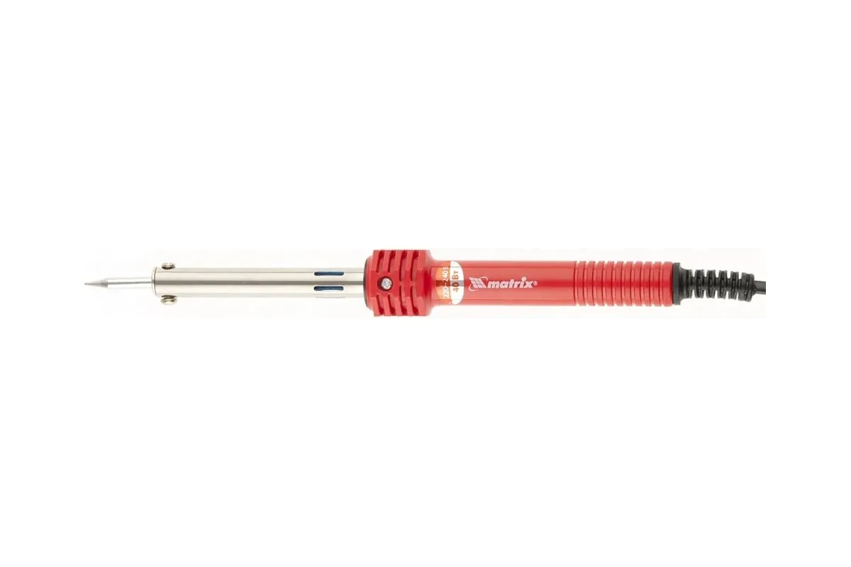 Паяльник 220В, 40W MATRIX 913004 широко распространен для эксплуатации в бытовых условиях. Позволяет легко и быстро произвести монтаж электронных схем, подключить электропроводку и пр. Паяльник имеет среднюю мощность. Нагревается непрерывно.