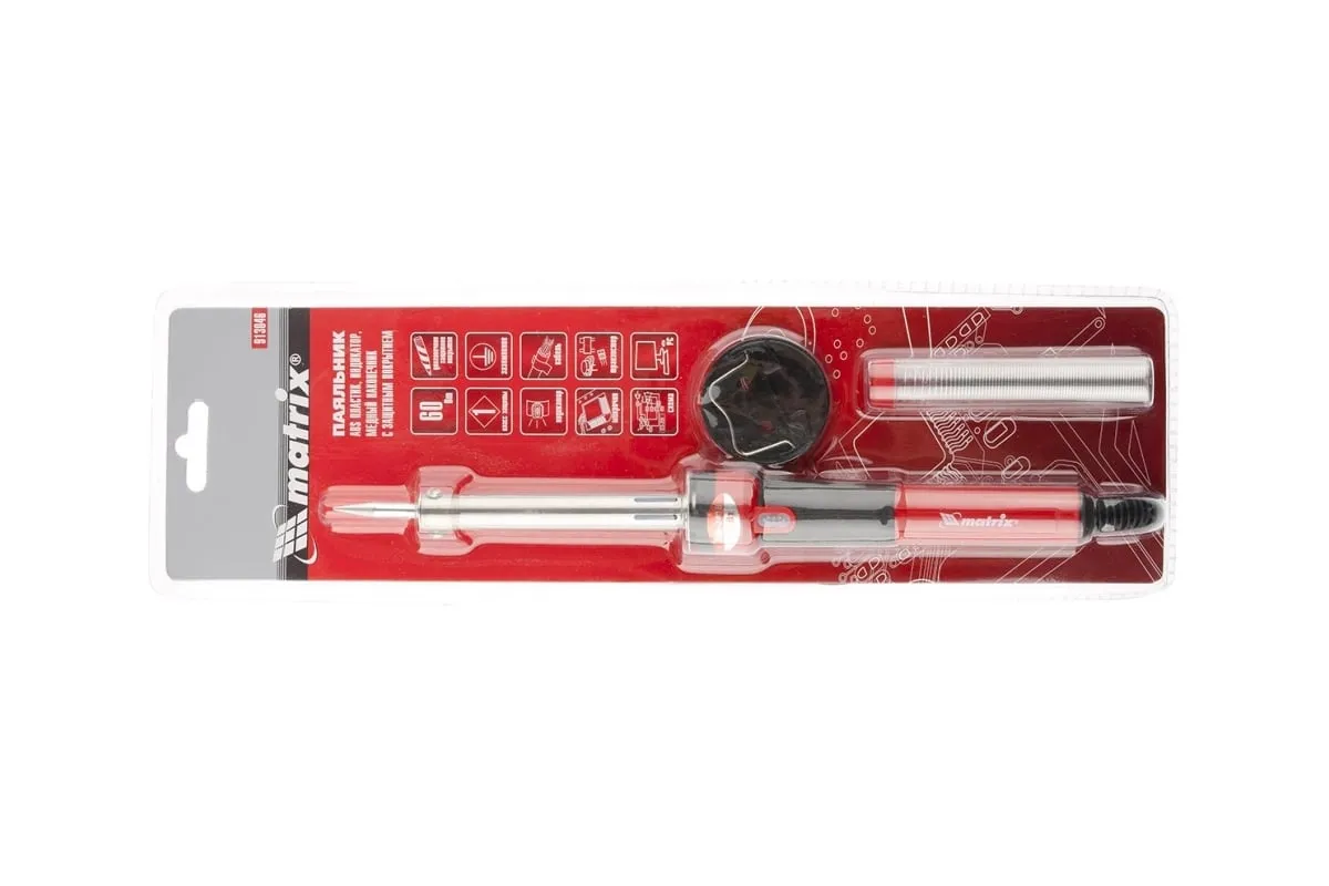 Паяльник 220В, 60W MATRIX 913046 представляет собой ручной инструмент для бытового использования, который работает по принципу непрерывного нагрева. Изделие позволит легко и быстро домашнему мастеру справиться с пайкой электронных схем или монтажом электропроводки.