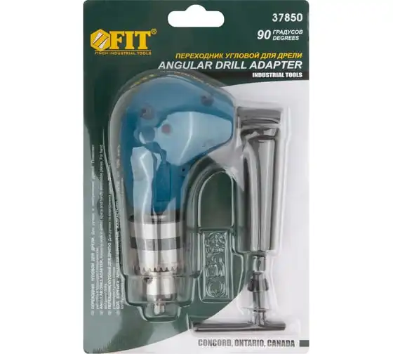 Переходник угловой FIT 37850 используется совместно с дрелями для сверления отверстий под углом 90о, а также в труднодоступных местах. Представляет собой насадку, оснащенную ключевым сверлильным патроном.