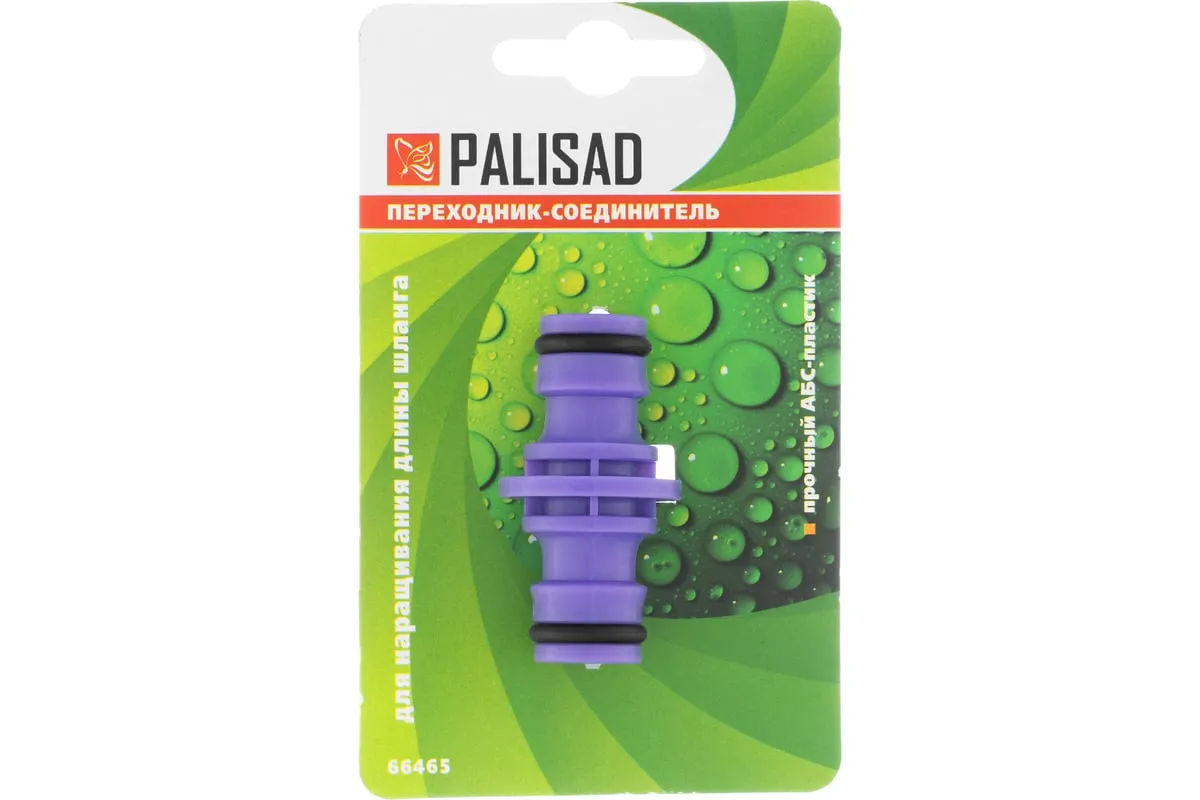Пластмассовый штуцерный переходник-соединитель Palisad 66465 позволяет удлинить шланг или соединить шланги разных диаметров. Может быть временно установлен в качестве ремонтной муфты. Упрощает монтаж поливочной линии на приусадебном участке.