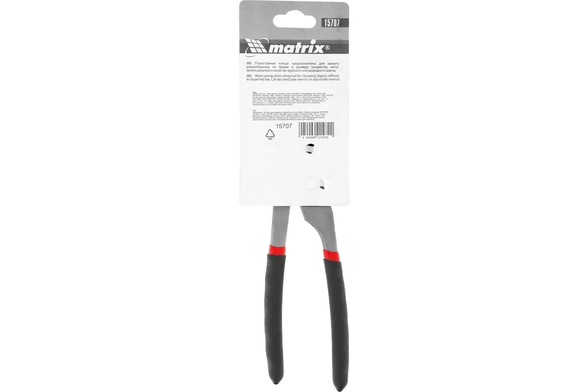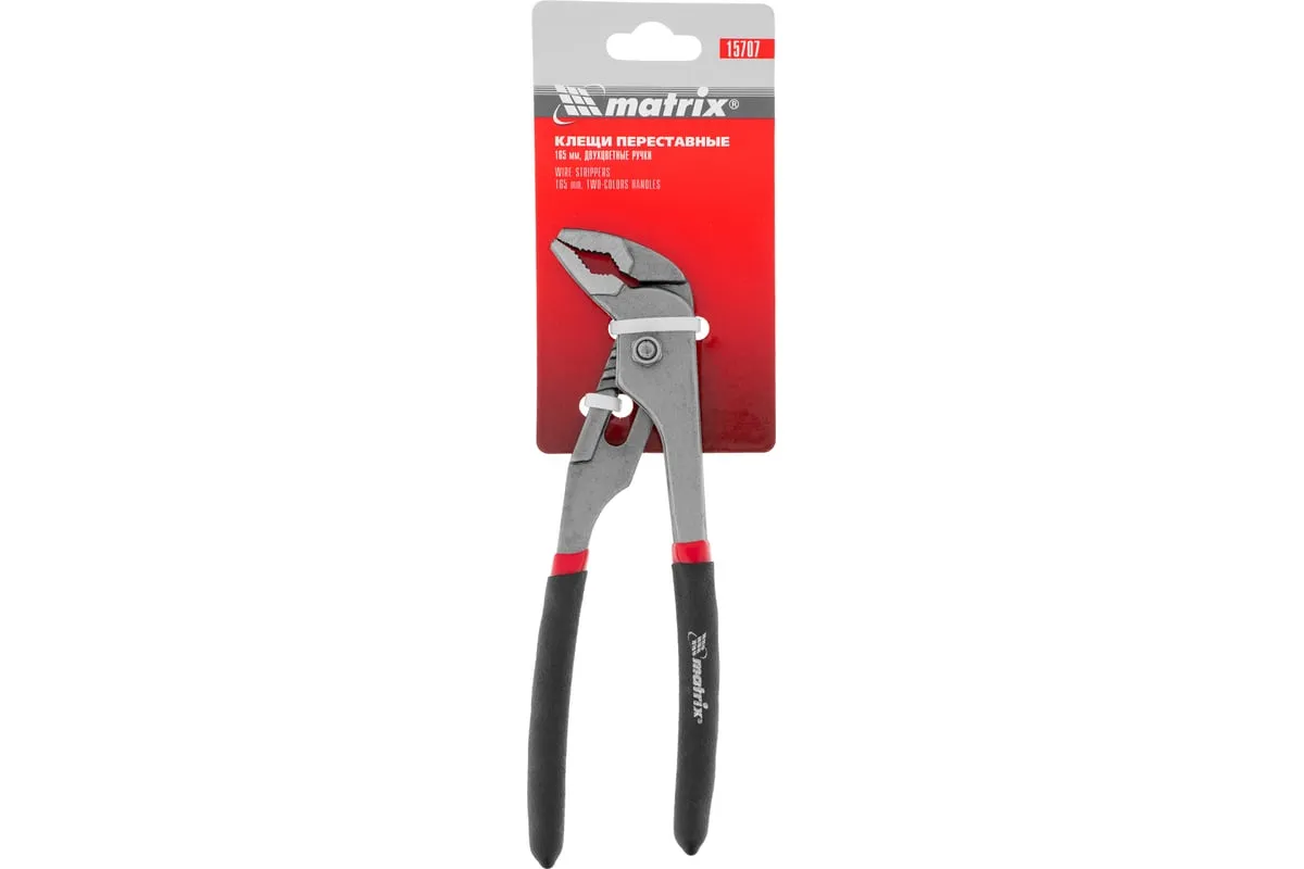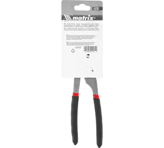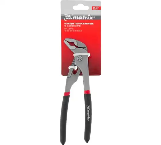 Переставные клещи 165 мм MATRIX 15707 могут быть применены в качестве разводного или трубного ключа. Инструмент выполнен из углеродистой стали, обладающей высокой прочностью. Имеет удобные рукоятки, чехол которых изготовлен из двухкомпонентного материала. Клещи могут производить захват разнообразных по форме деталей.