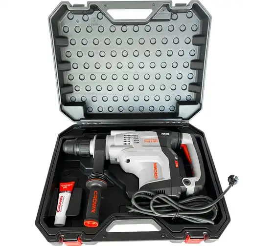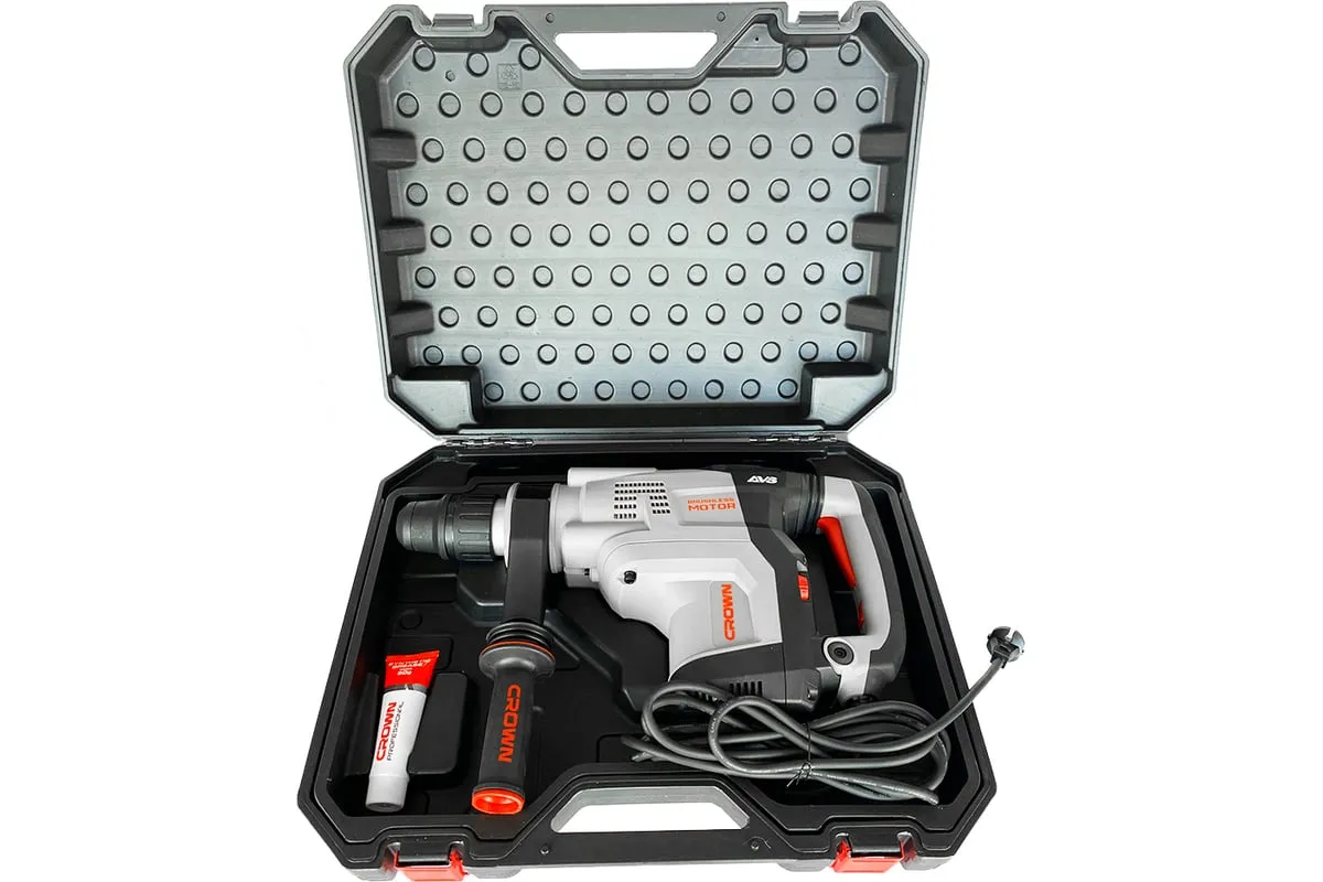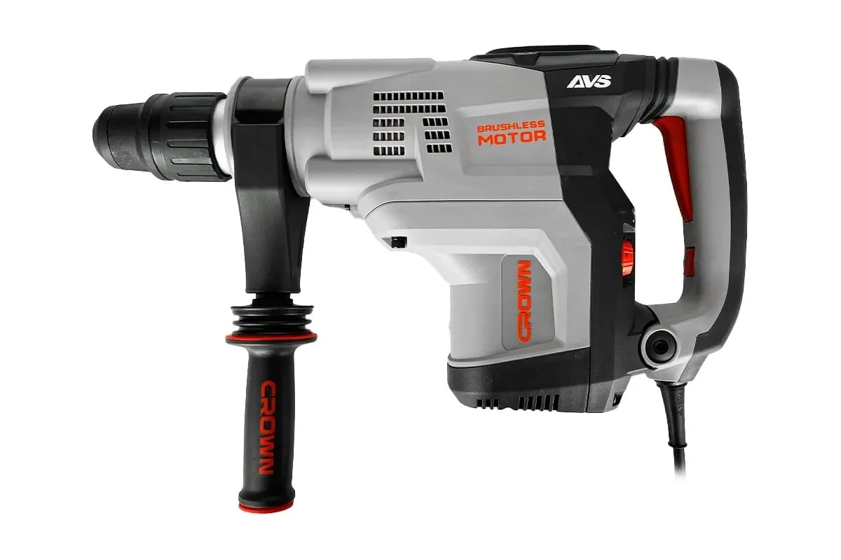 Перфоратор CROWN CT18215V BMC построен на базе бесщёточного электродвигателя 1500 Вт, с защитой ротора от абразивной пыли, и позволяет работать со всем спектром оснастки SDS-Max до 48 мм, а также коронками по бетону диаметром до 125 мм.