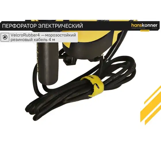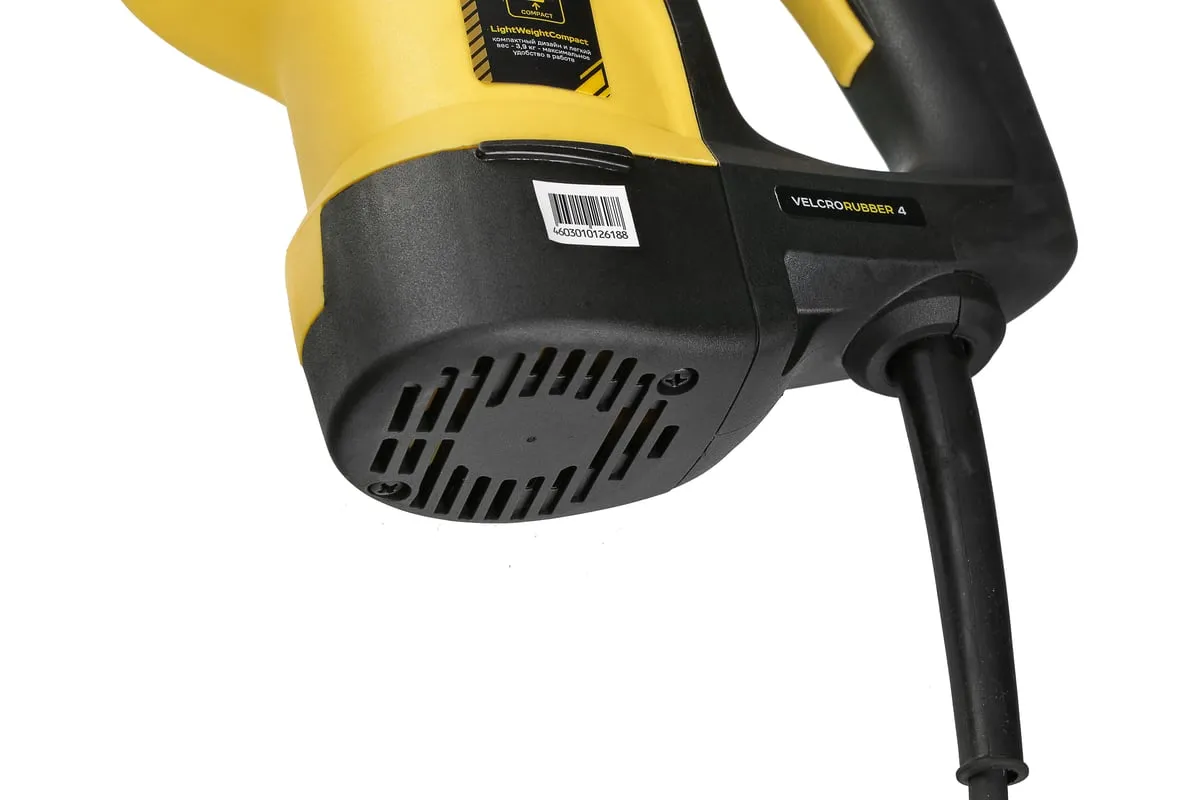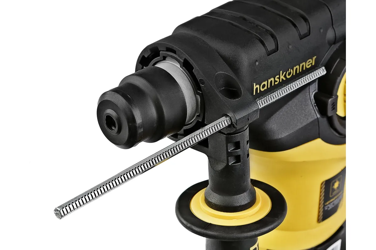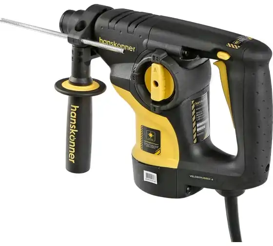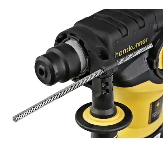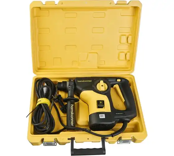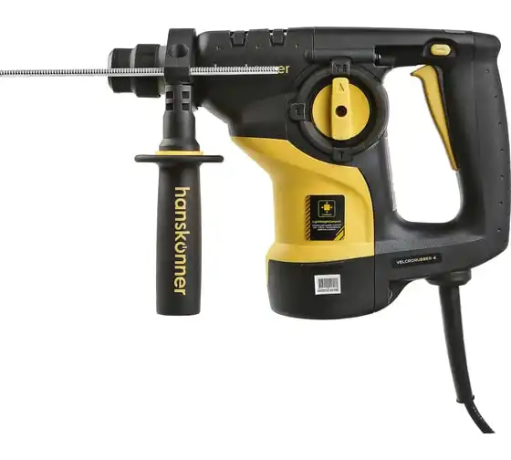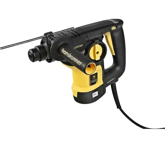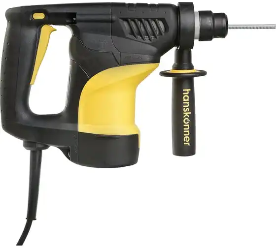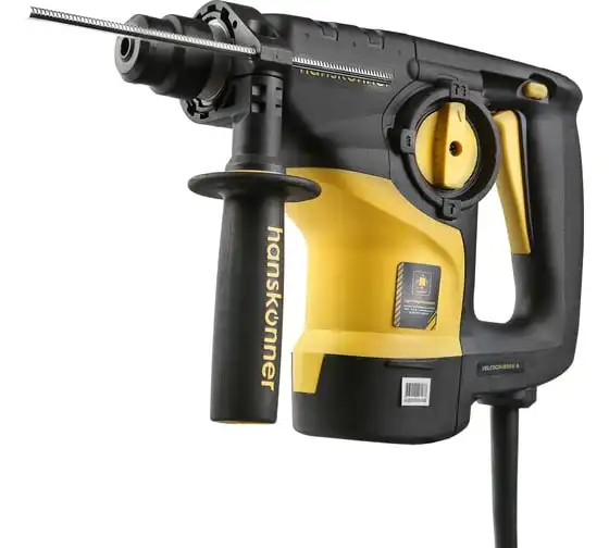 Перфоратор Hanskonner HRH0928DR — компактный, маневренный электроинструмент для сверления отверстий в таких материалах как: дерево, сталь, кирпич, бетон или снятия старой керамики, штукатурки. В целях выполнения конкретной задачи следует выбрать один из трех режимов: «сверление», «сверление с ударом», «удар». Данная модель отлична подвижным и надежным переключателем реверса и широкой пусковой кнопкой сподручной для верного регулирования скорости вращения патрона.Именно SDS+ патрон предоставляет быстрое и надежное крепление необходимой оснастки. В свою очередь резиновые накладки рукояток придают удобства и уверенности в использовании электроинструмента. Вертикальная компоновка ударного механизма обеспечивает удар несколько большей силы, чем горизонтальное расположение электродвигателя той же мощности.Морозостойкий резиновый сетевой кабель длинной 4 м, позволяет охватит рабочую зону площадью 50 м2.