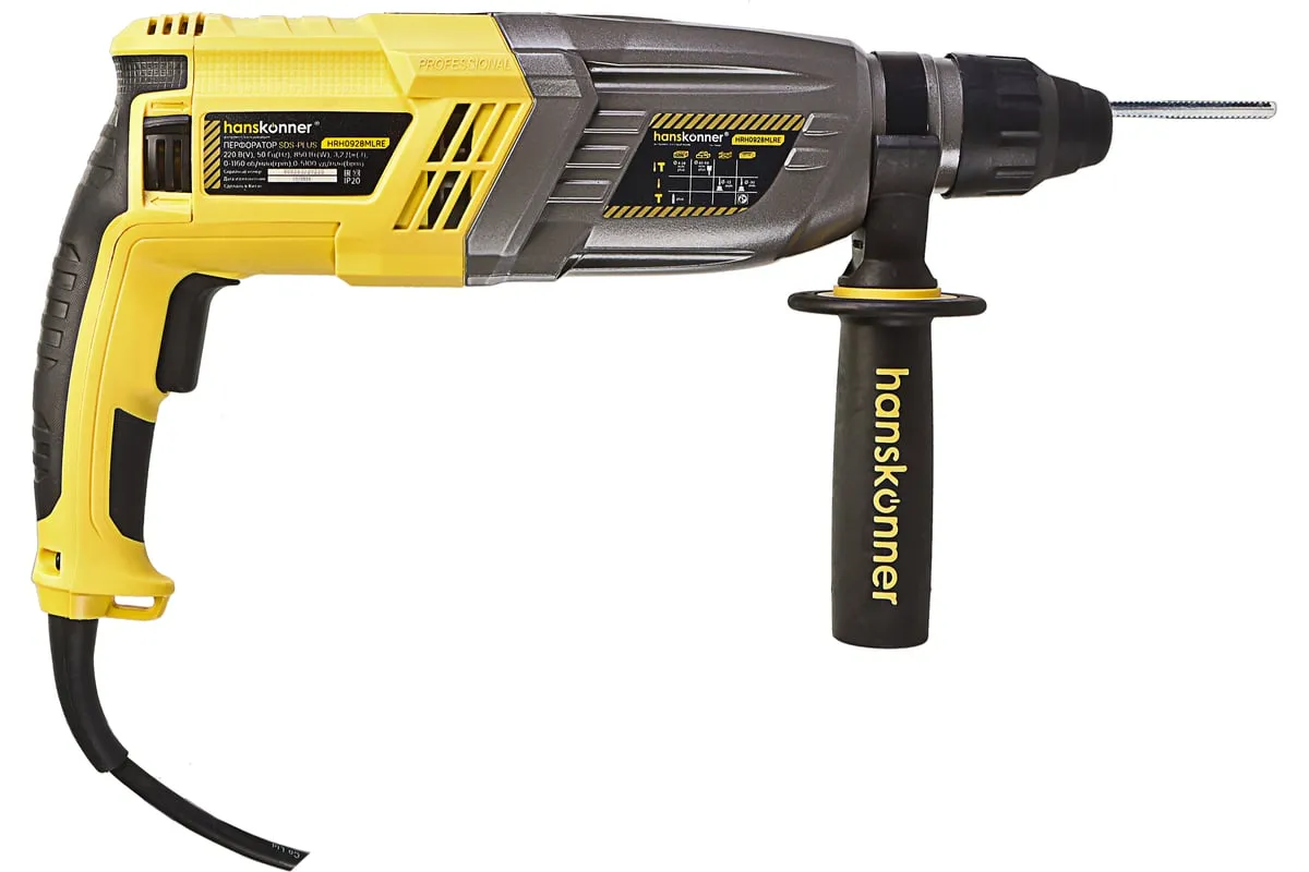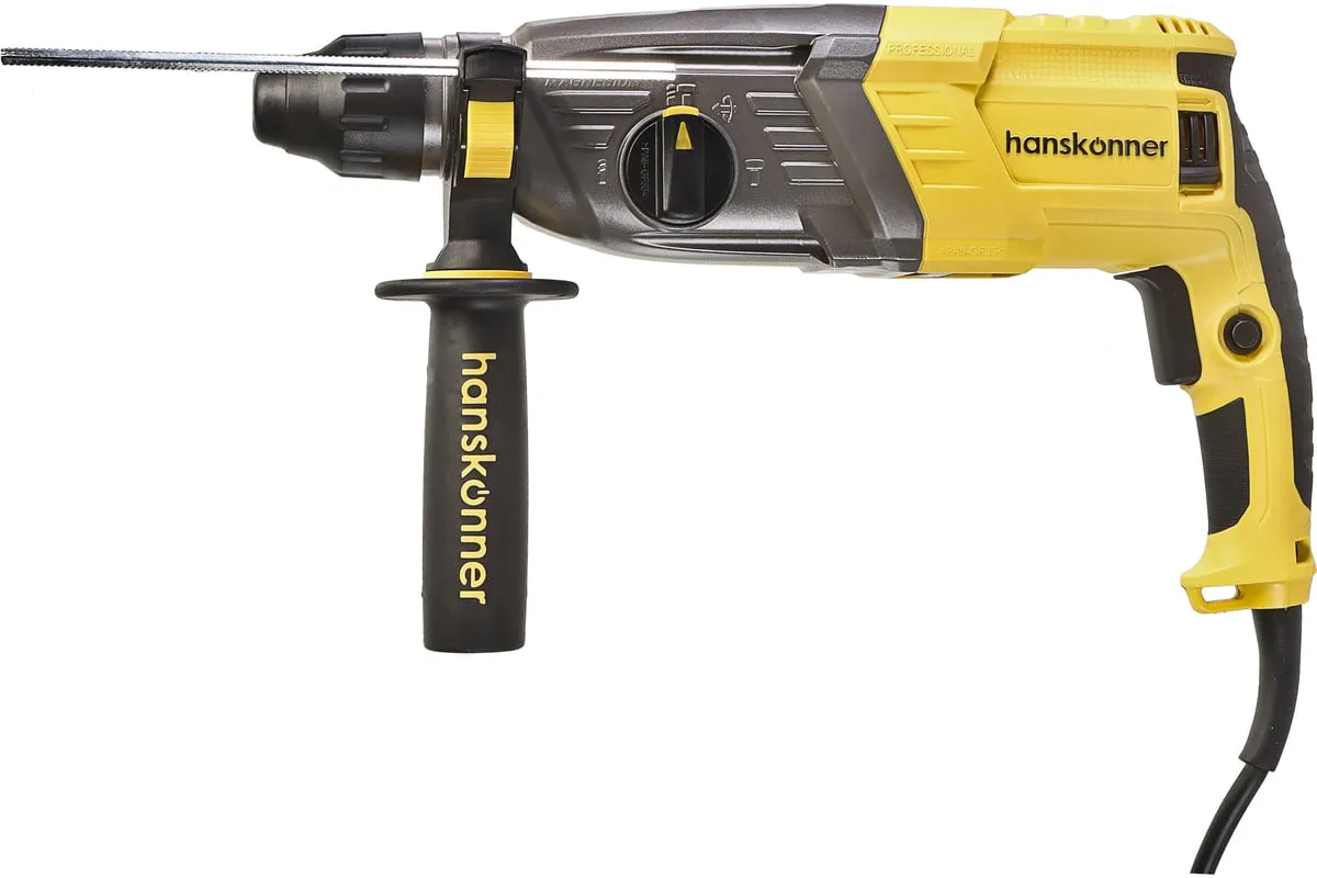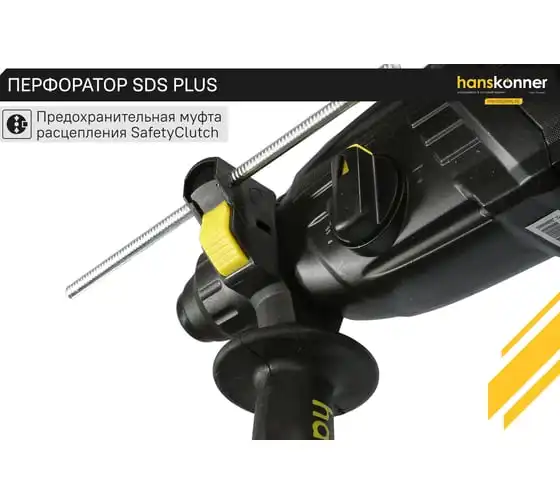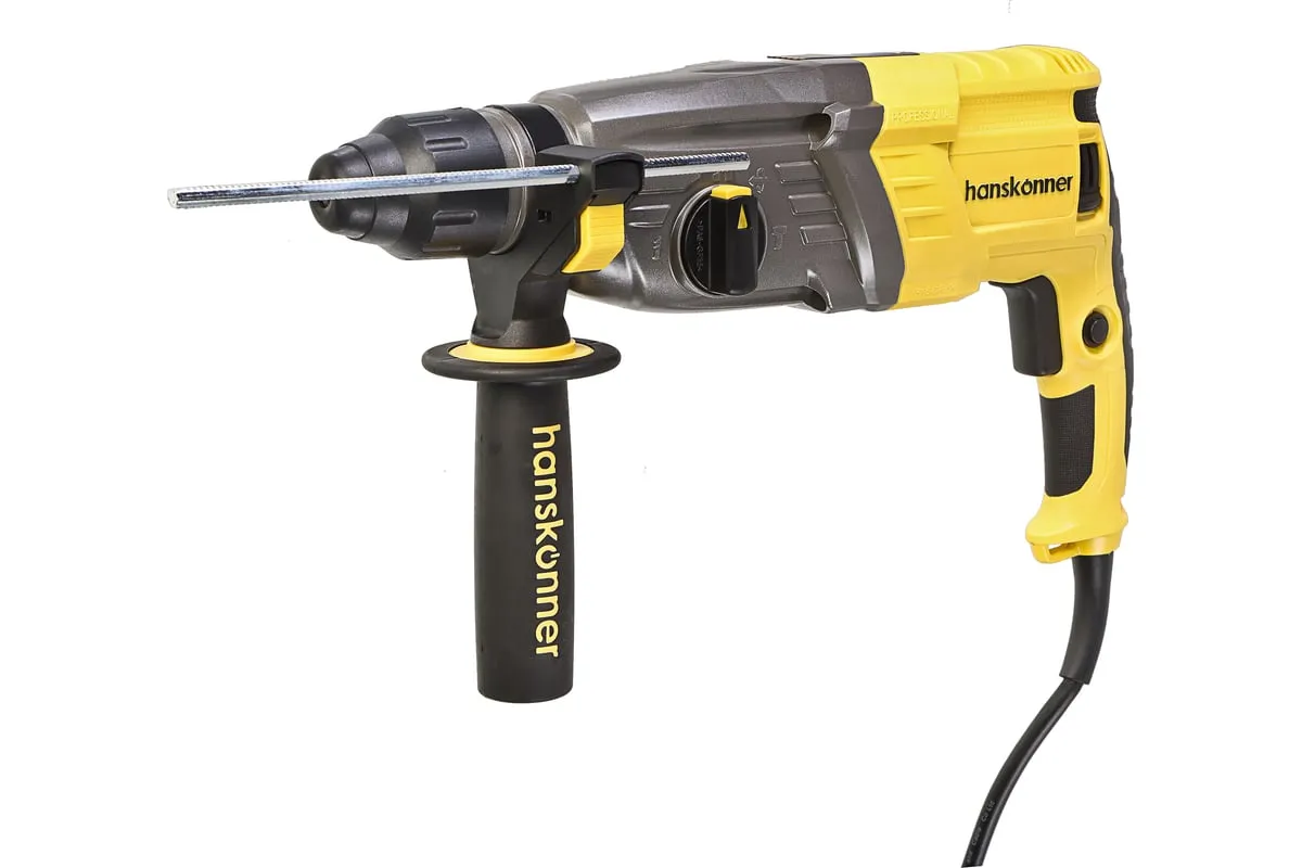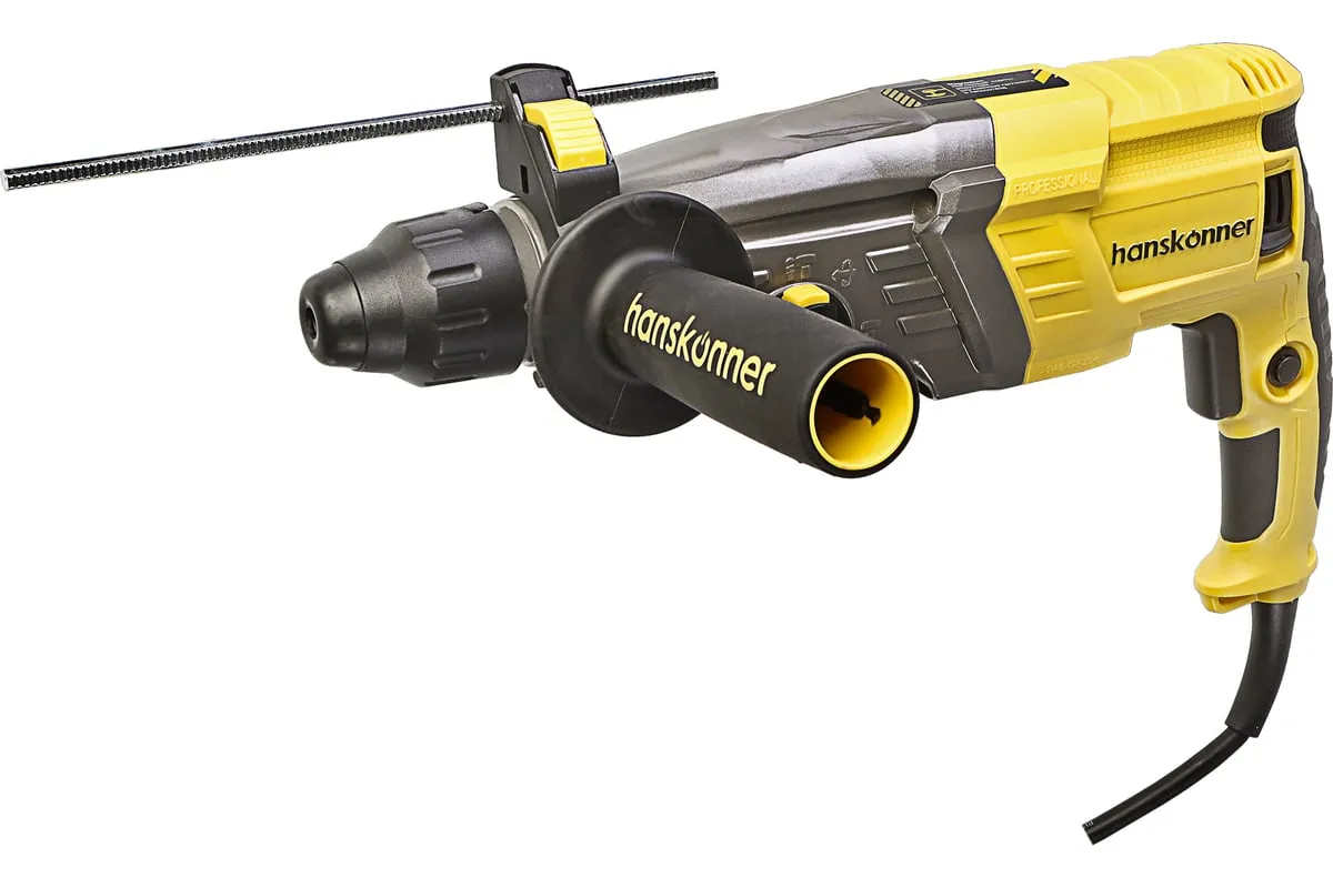 Перфоратор Hanskonner HRH0928MLRE – инструмент, сочетающий мощность и компактность, основные задачи которого: снятие старых настенных покрытий, сверления отверстий в дереве, пластике, металле, кирпиче, композите или бетоне. Выполняя конкретную задачу следует выбрать один из трех режимов: «сверление», «сверление с ударом», «удар». Комфортному применению перфоратора содействует выключатель с кнопкой блокировки, для удобства при проведении продолжительных работ, и функцией акселератора в целях регулировки скорости. Корпус редуктора, данной модели, сделан из магниевого сплава, что обеспечивает большую прочность и качественный теплоотвод. Также, долговечность инструмента подкрепляется бронированием ротора и пылезащитным кольцом подшипника.В интересах надежного и быстрого крепления оснастки, модель оснащена быстрозажимным патроном SDS+. Ловкости в обращении с перфоратором благоприятствуют прорезиненные эргономичные рукояти. А ограничитель глубины поможет исполнить отверстия заданной глубины. Безопасному ходу эксплуатации способствует встроенная предохранительная муфта SafetyClutch, активная при заедании или защемлении оснастки, что предотвращает внезапный резкий поворот инструмента в руках оператора.Морозостойкий резиновый сетевой кабель длинной 4 м, позволяет охватит рабочую зону площадью 50 м2.