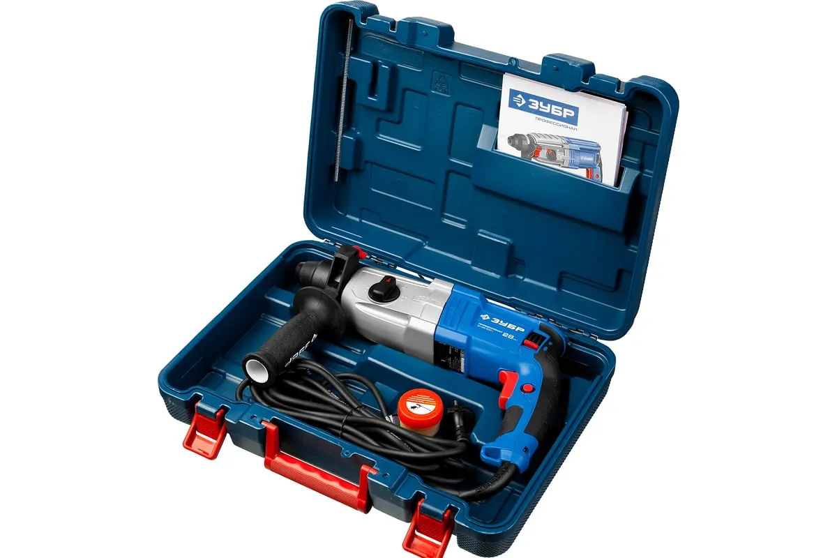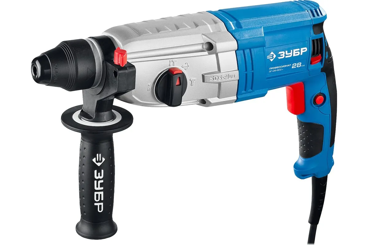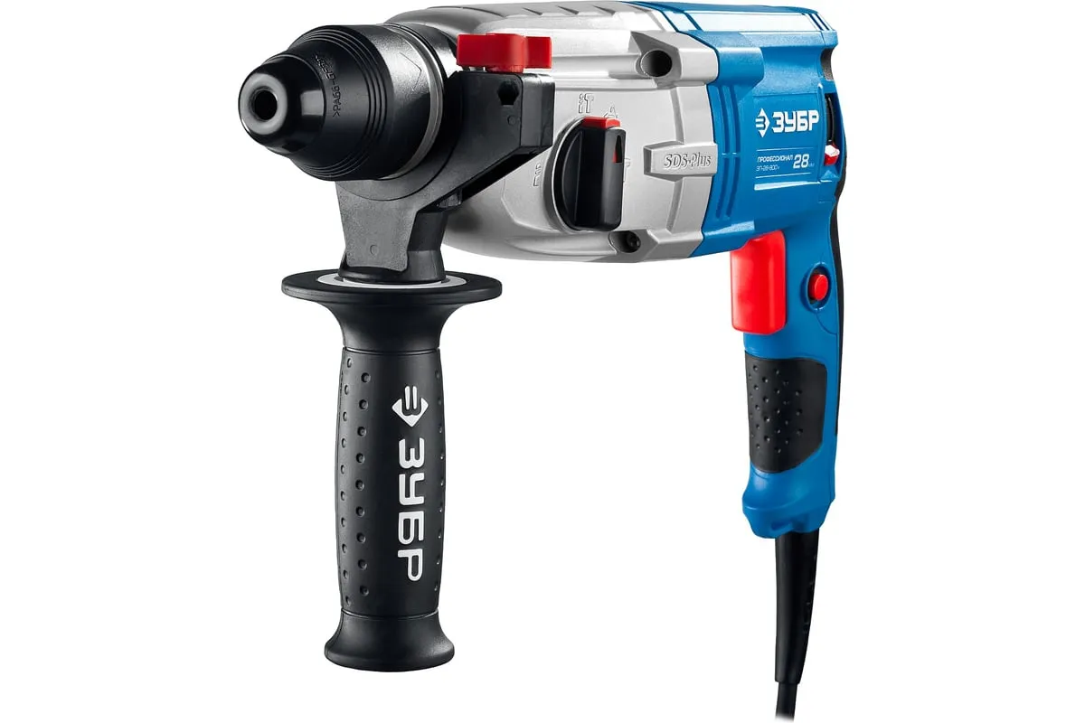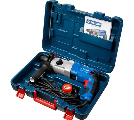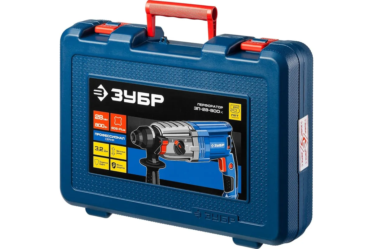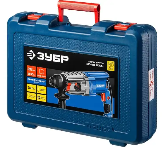 Перфоратор ЗУБР Профессионал SDS Plus ЗП-28-800 К имеет усовершенствованный ударный механизм, что обеспечивает высокую производительность. Дополнительная рукоятка позволяет лучше удерживать инструмент. Предусмотрено три режима работы: сверление, сверление с ударом, долбление. Также есть режим поворота долота. Модель поставляется в кейсе.