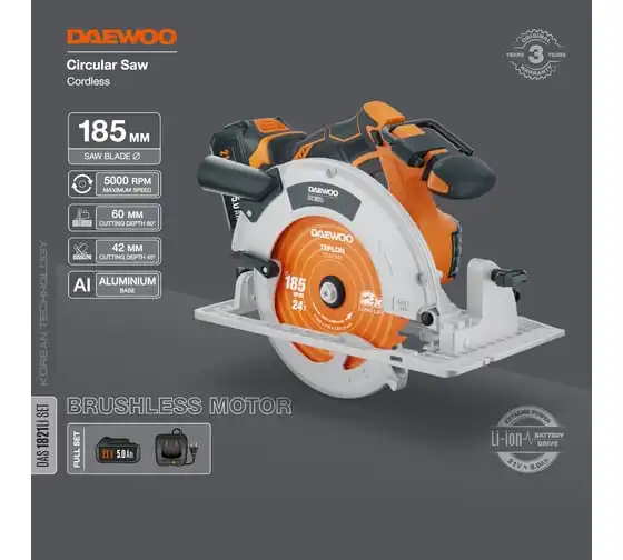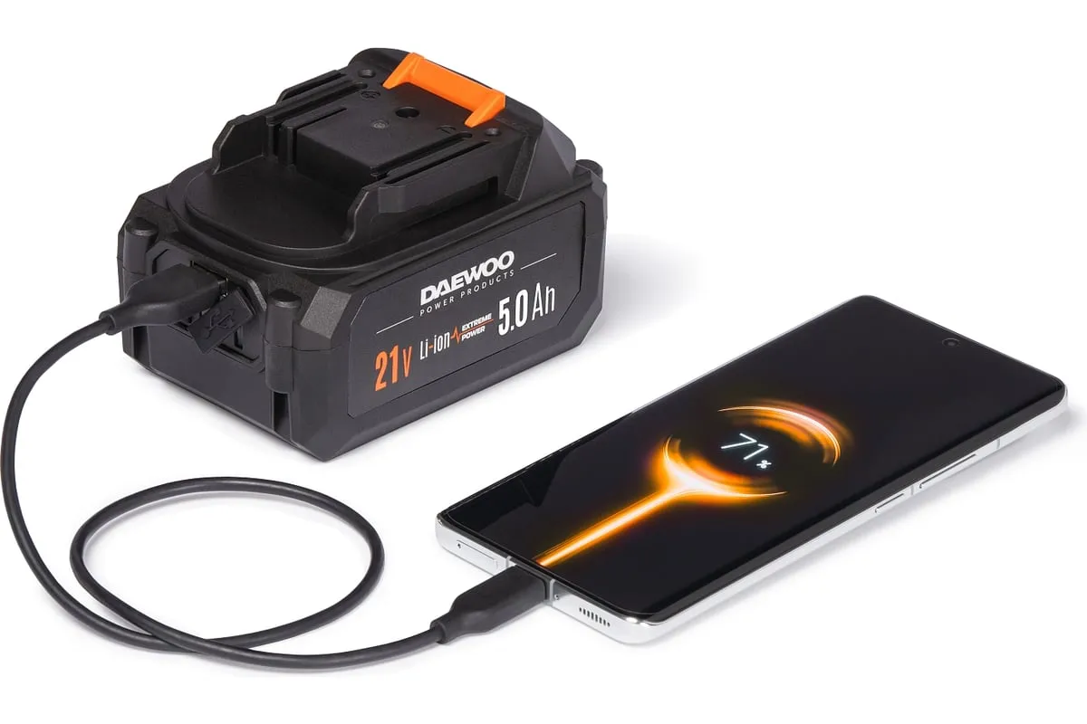 Товар совместим со всеми аккумуляторными батареями и зарядными устройствами DAEWOO линейки 21В