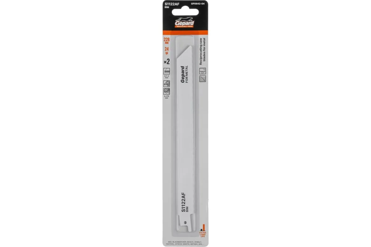 Полотно для сабельной пилы GEPARD по металлу S1122AF 228 мм 2 штуки (GP0642-04) - сменный пильный элемент для сабельных пил, используются для быстрого, чистого пиления тонкой листовой стали, труб и профилей, мягких металлов.