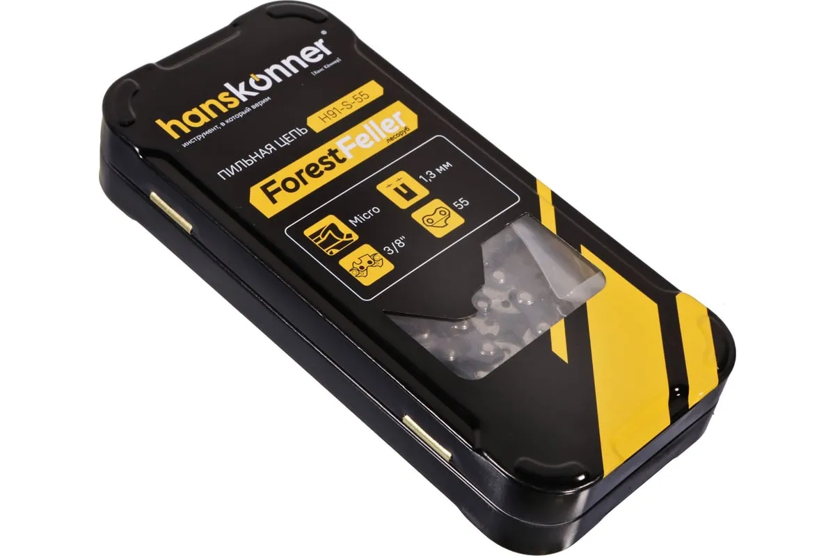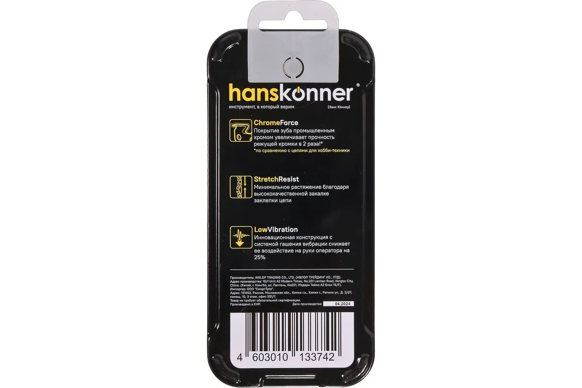 ChromeForce - Покрытие зуба промышленным хромом увеличивает прочность режущей кромки в 2 раза !** по сравнению с цепями для хобби-техникиStretchResist-Минимальное растяжение благодаря высококачественной закалке заклепки цепиLowVibration-Инновационная конструкция с системой гашения вибрации снижает ее воздействие на руки оператора на 25%MetalCase - удобный металлический кейс для хранения и транспортировки цепи, метизов