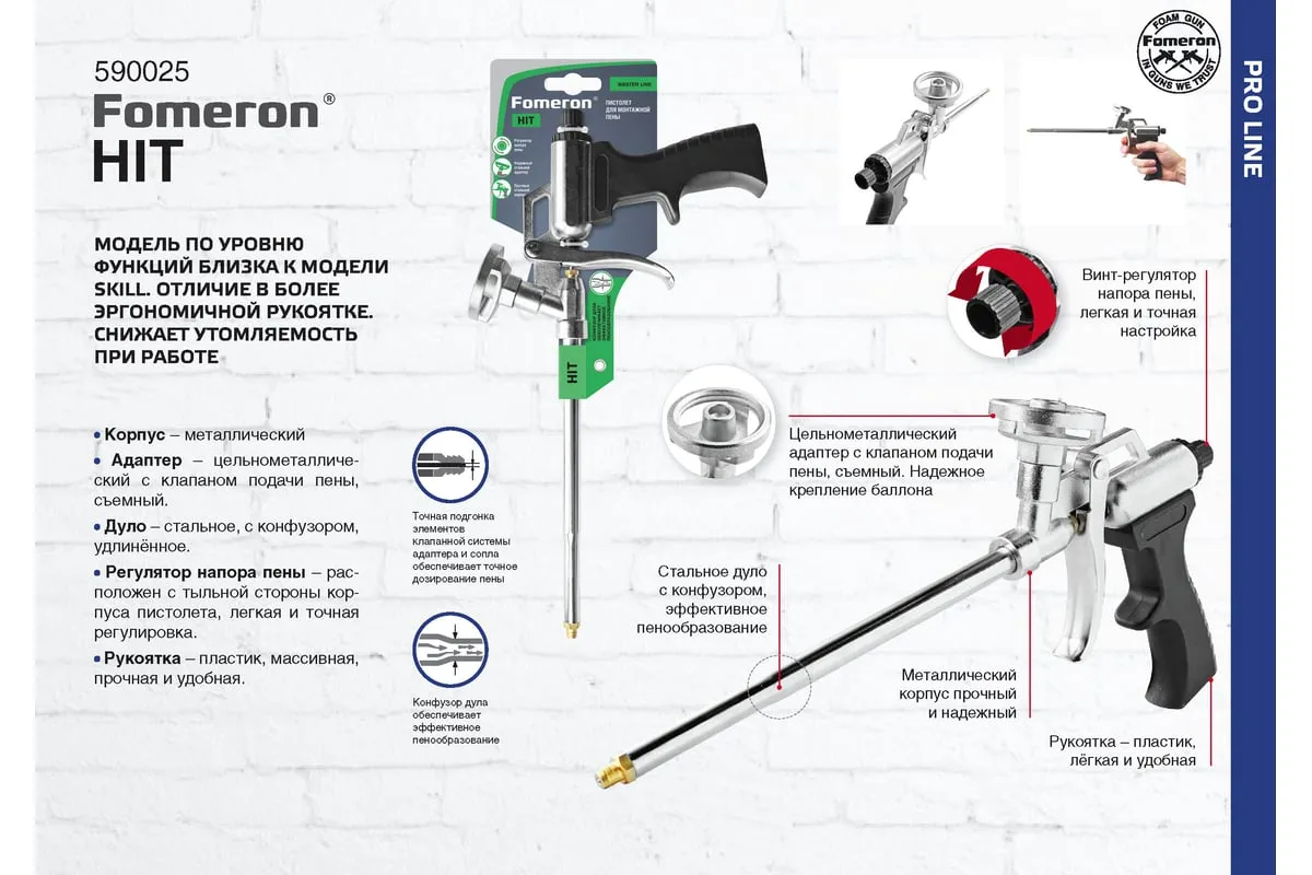 Регулятор напора пены – расположен с тыльной стороны корпуса пистолета, легкая и точная регулировка.
