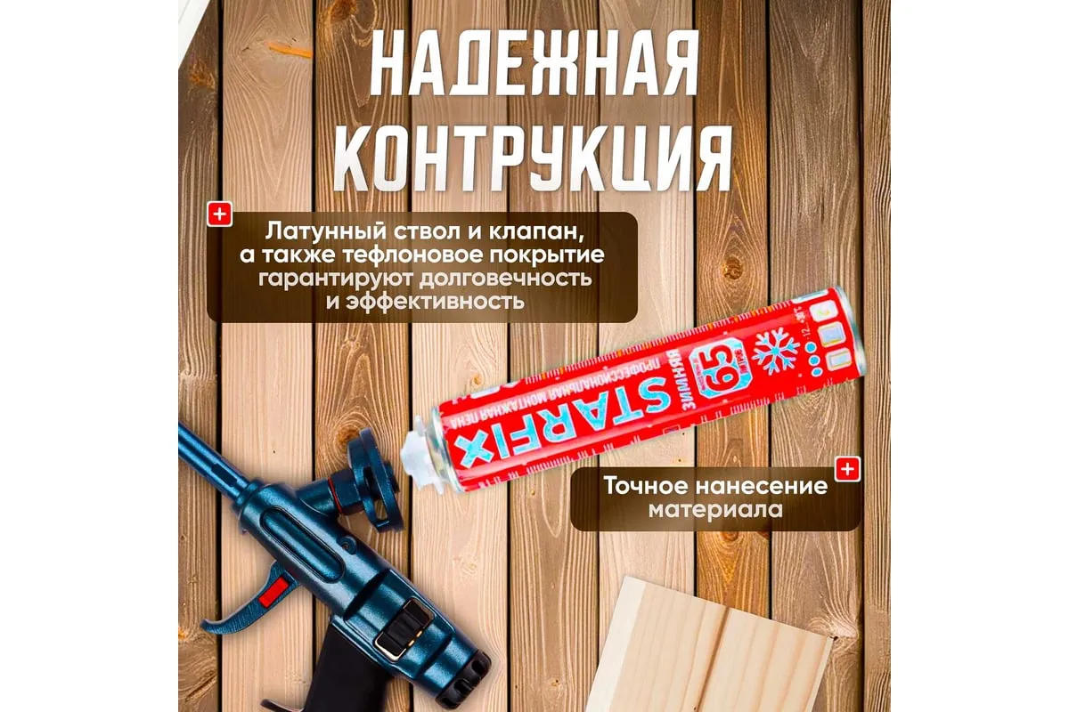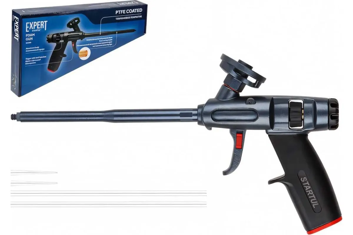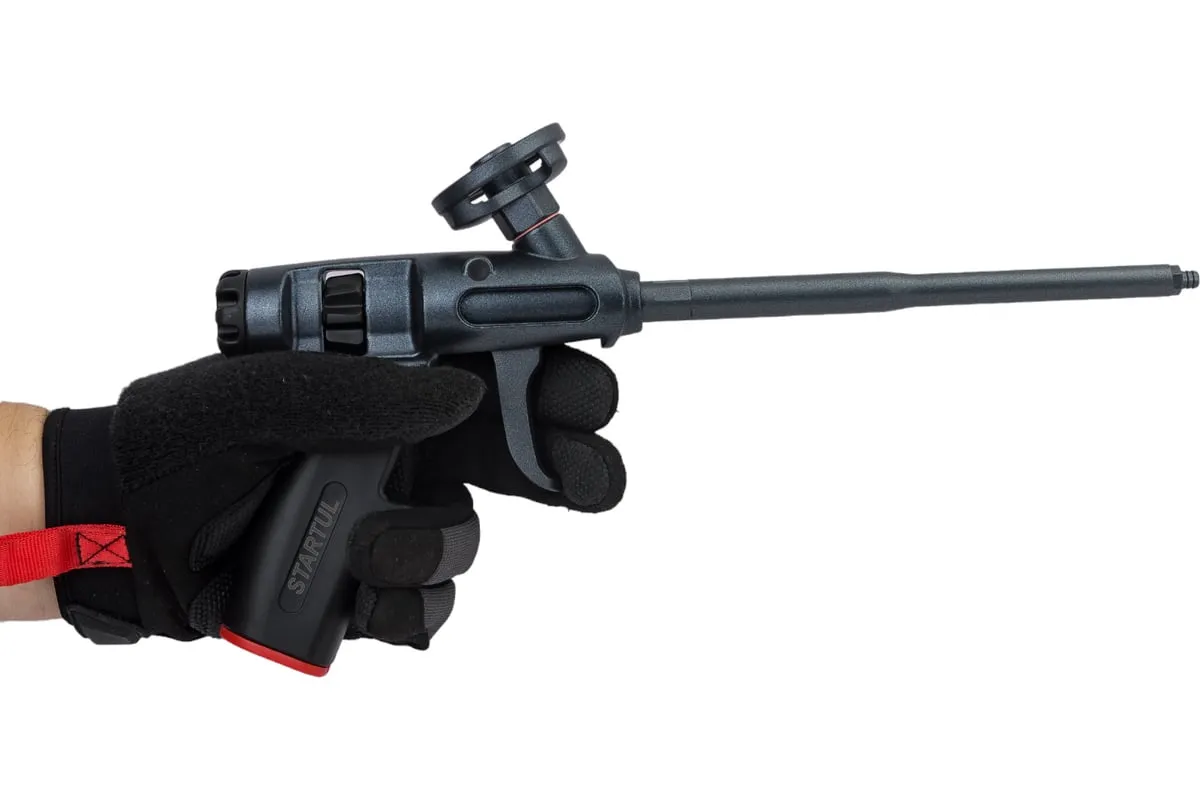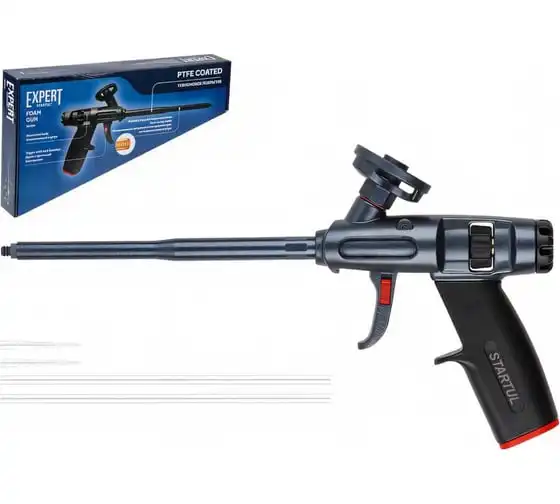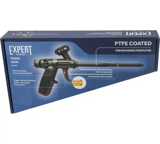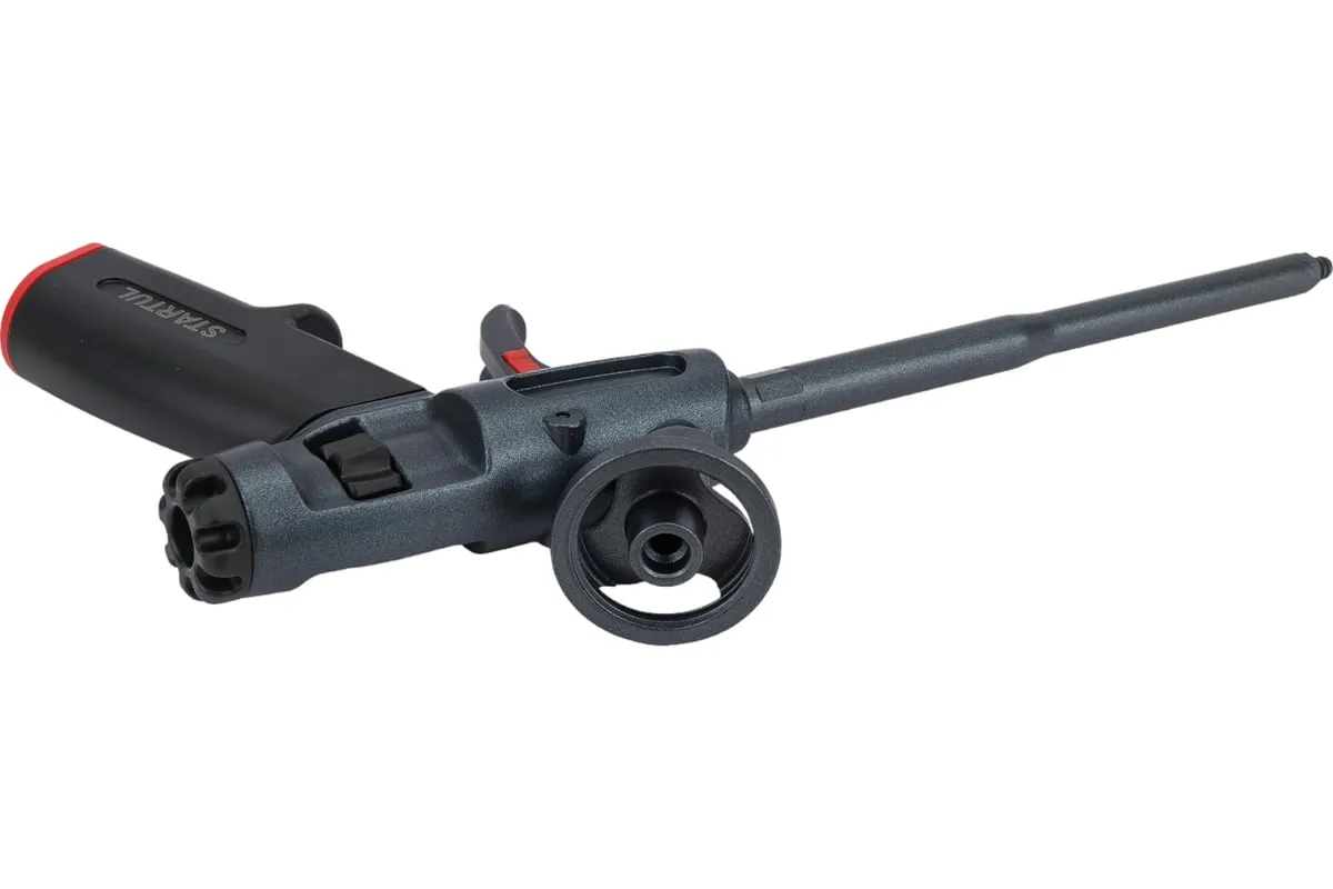 Пистолет применяется для выдавливания монтажной пены. Удобен для работ в труднодоступных местах.