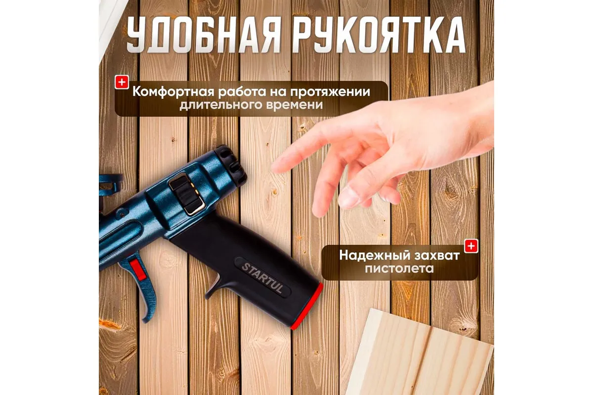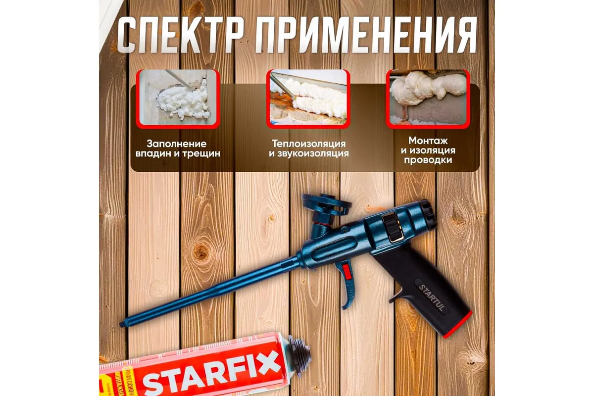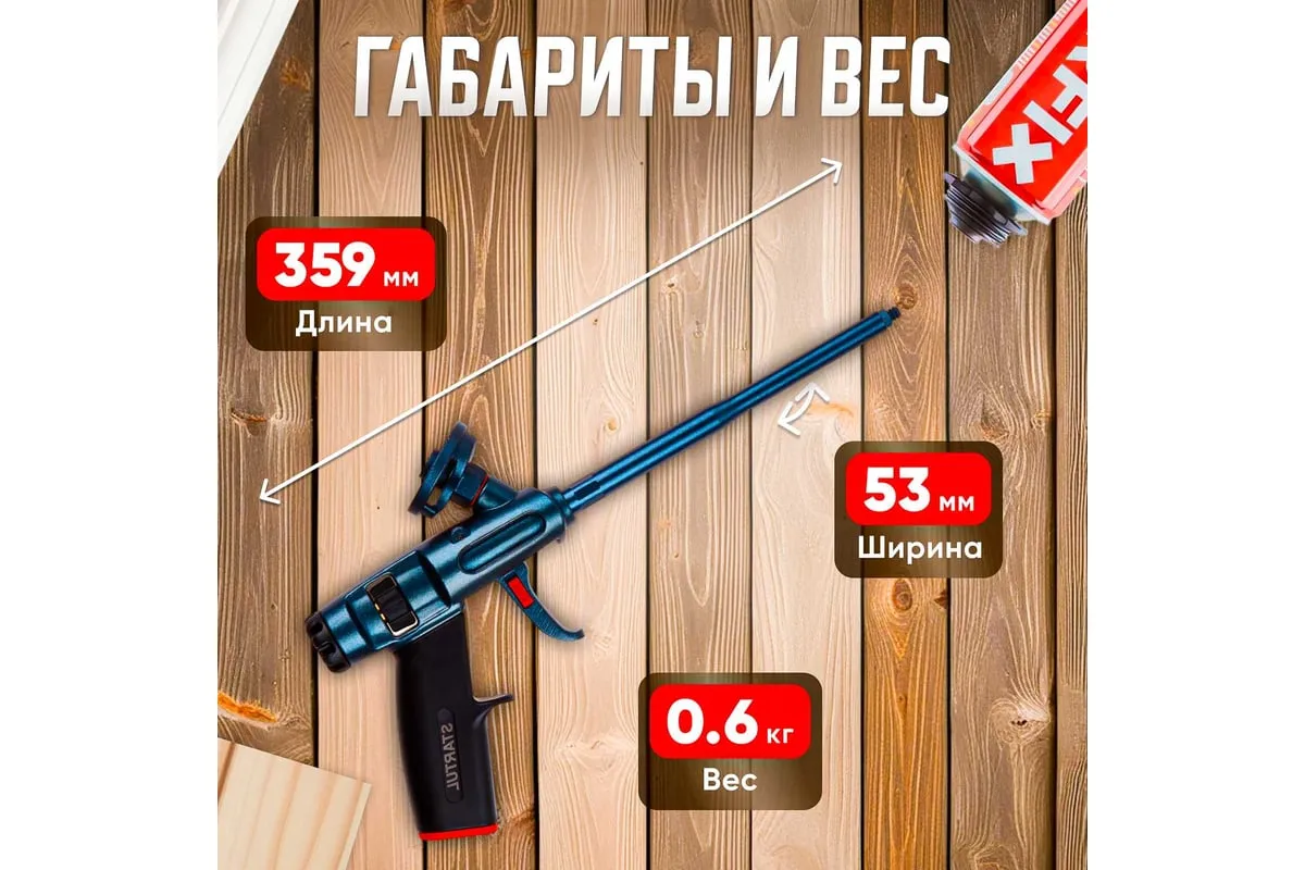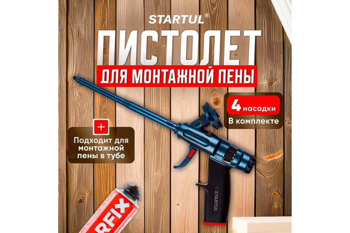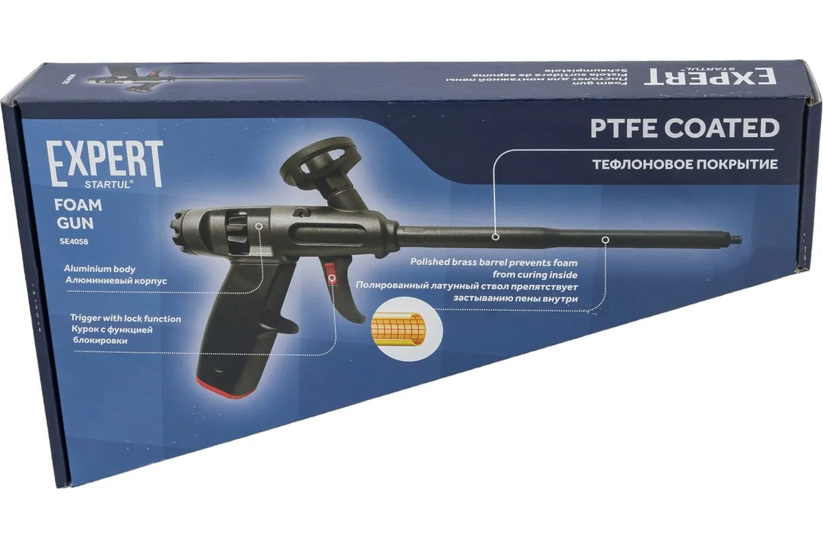 Пистолет применяется для выдавливания монтажной пены. Удобен для работ в труднодоступных местах.