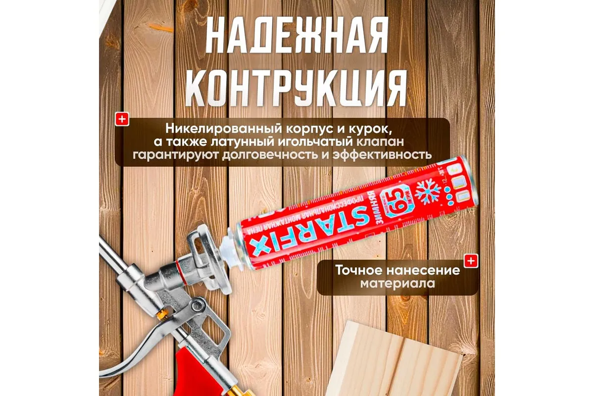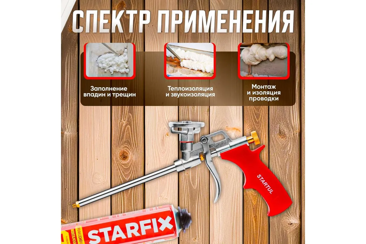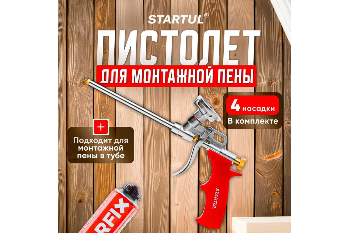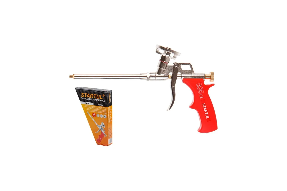 Пистолет для монтажной пены STARTUL Master ST4056 используется при монтаже окон, дверей и других строительных конструкций для заполнения пустот.