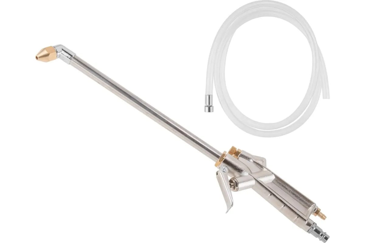 Моечный пневмопистолет предназначен для мойки и смазки поверхностей, узлов или деталей потоком моющей жидкости и воздухом. Для удобства использования оснащён шлангом, который можно погружать в любую емкость с моющим средством.