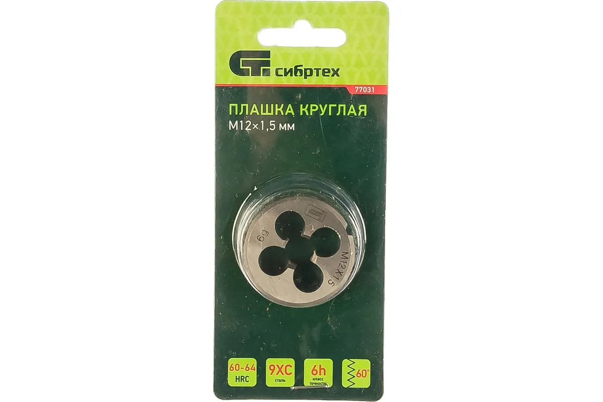 Плашка М12 х 1,5 мм СИБРТЕХ 77031 - инструмент для нанесения внешней резьбы. Сделана из прочной стали для выдерживания высоких нагрузок. Твердость режущих кромок соответствует ГОСТу. Для удобства в работе используется плашкодержатель.