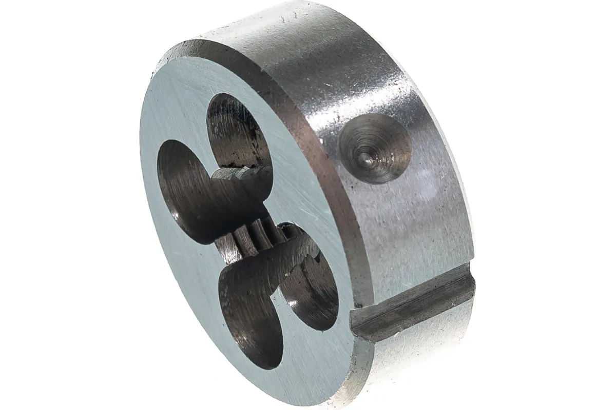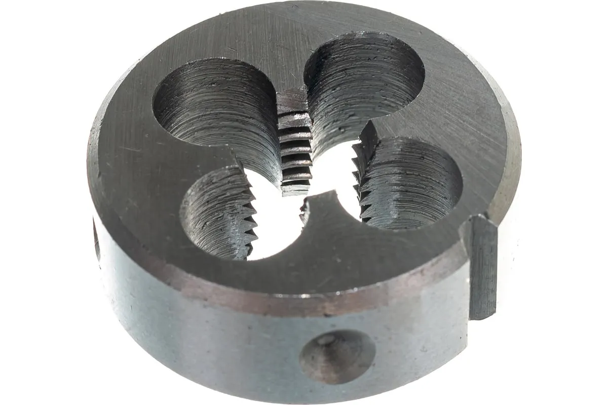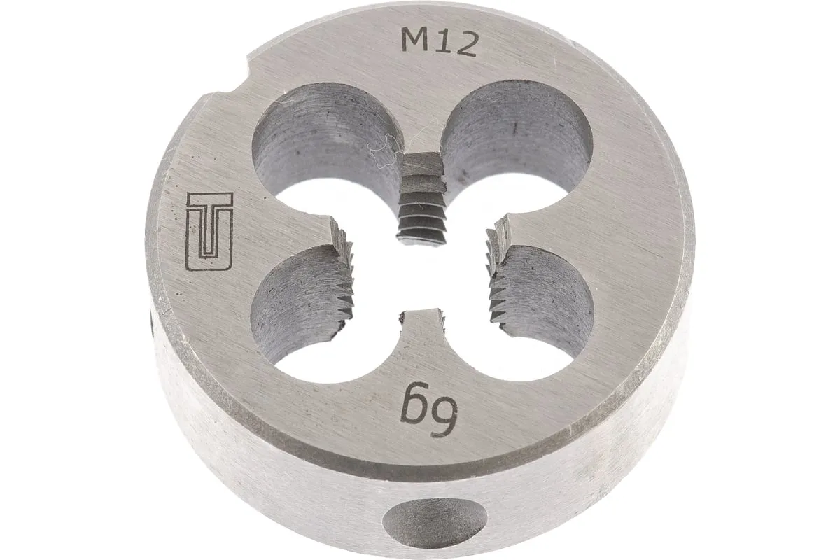 Плашка М12 х 1,75 мм СИБРТЕХ 77032 представляет собой круглую гайку, в которой проделаны отверстия с режущими кромками и отверстия для отвода стружки. Инструментальная сталь, используемая при изготовлении плашки, обладает высокой прочностью. Данный инструмент применяется для нанесения внешней резьбы.