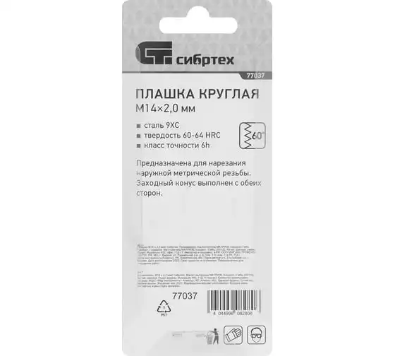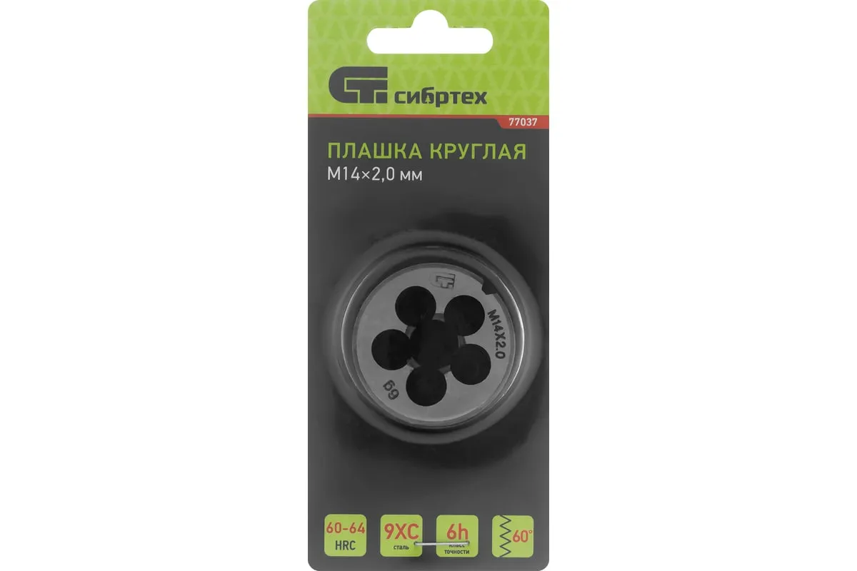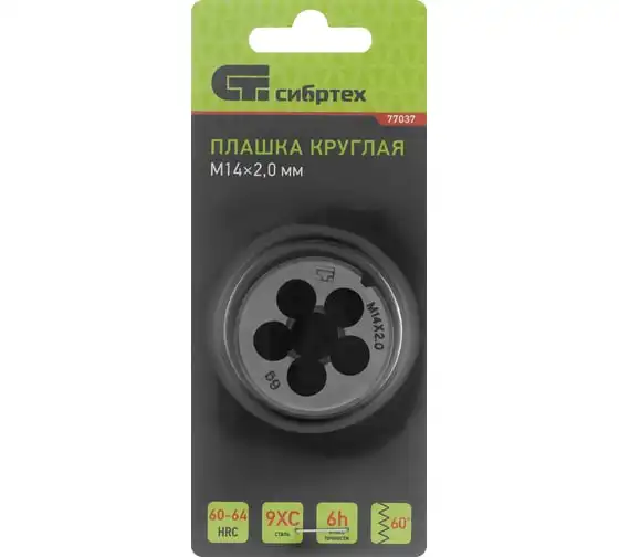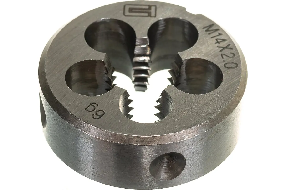 Плашка М14 х 2,0 мм СИБРТЕХ 77037 используется, когда требуется нанести на деталь внешнюю резьбу. В конструкции имеются стружечные отверстия. Инструмент выдерживает большие нагрузки, отличается высокой износостойкостью и прочностью.