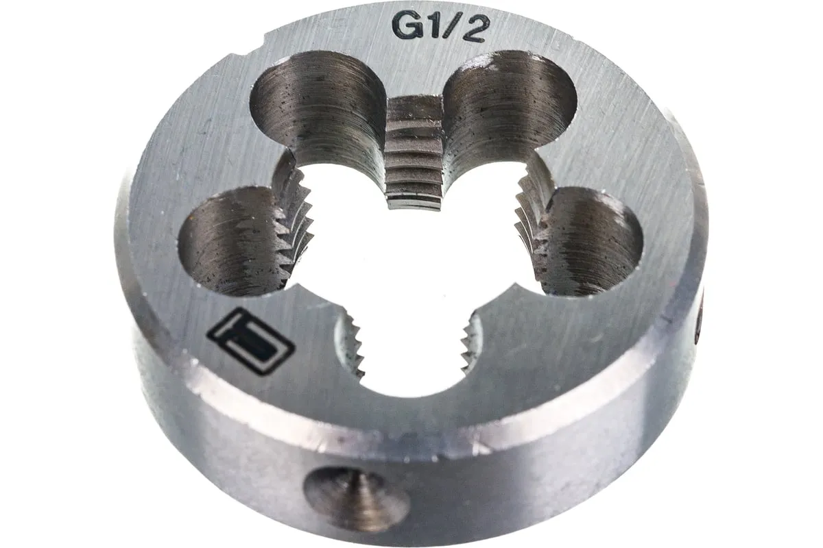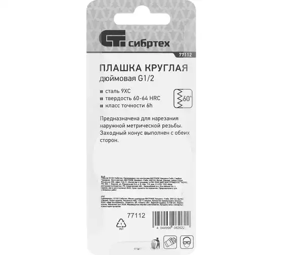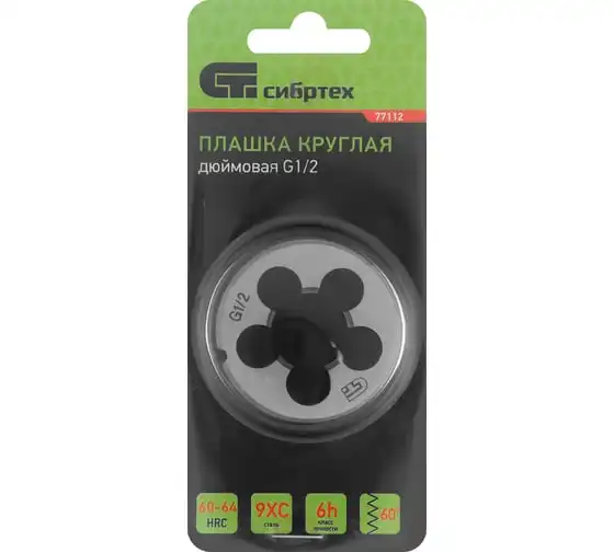 Плашка СИБРТЕХ 77112 имеет круглую форму. Данное приспособление выполнено из высокопрочной стали. Плашка предназначена для нанесения наружной резьбы размером 1/2 дюйма. Устойчива к износу и рассчитана на длительную эксплуатацию.