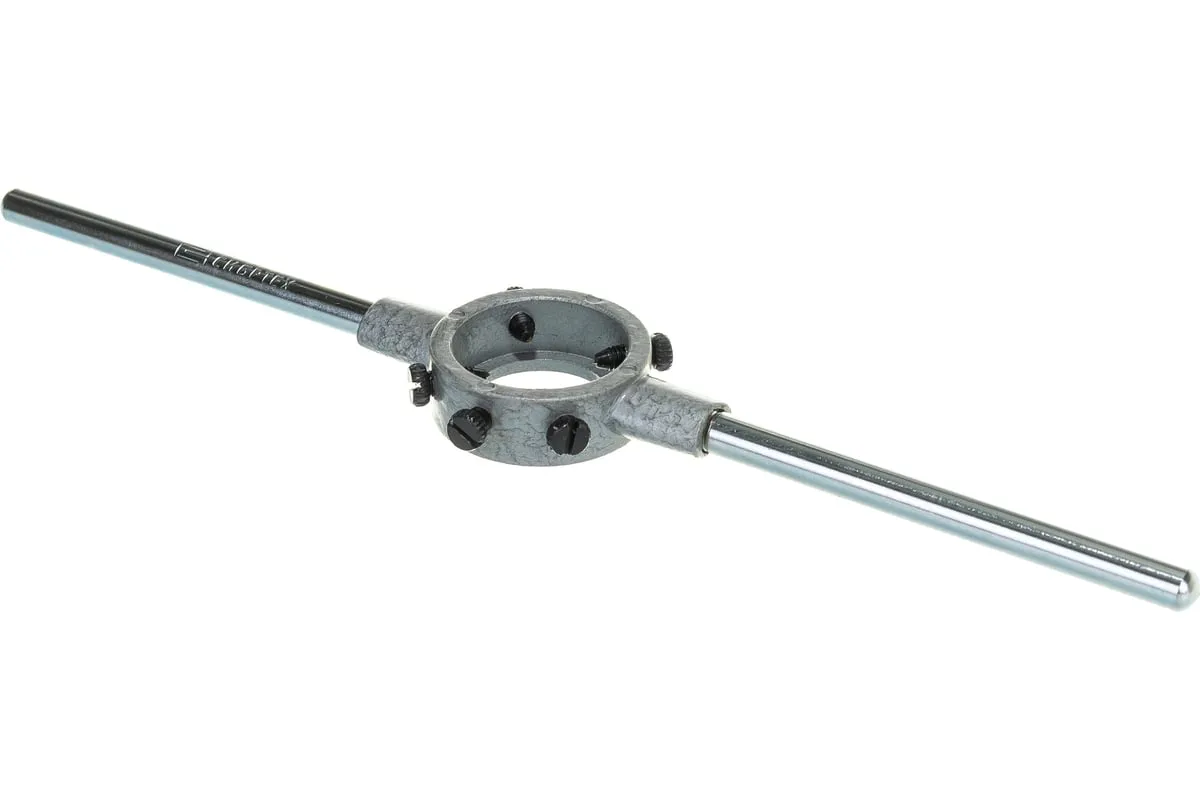 Плашкодержатель СИБРТЕХ 77438 применяется для удержания плашек при нарезании резьбы. Имеет разборную конструкцию и изготовлен из высокопрочной стали.