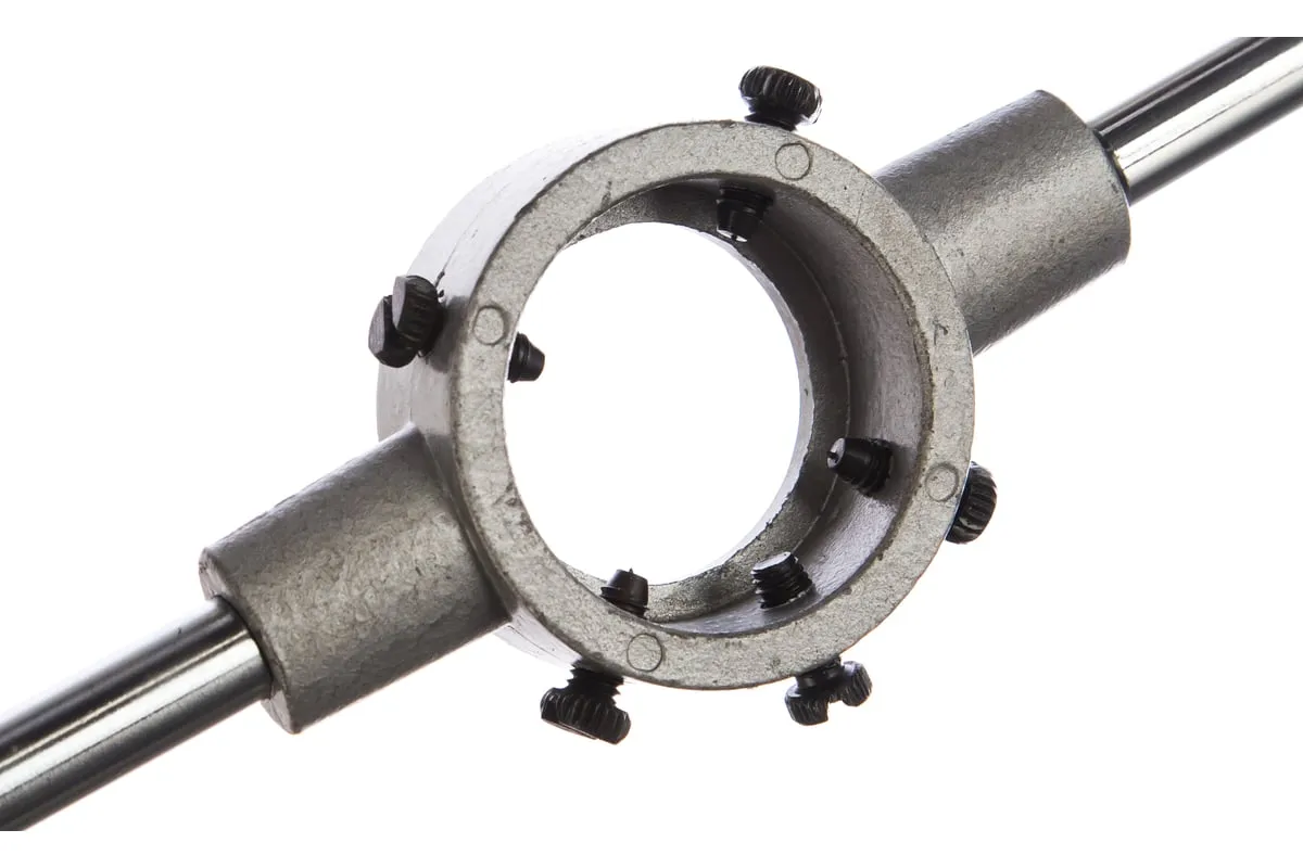 Плашкодержатель СИБРТЕХ 77450 применяется для удержания плашек при нарезании резьбы. Имеет разборную конструкцию и изготовлен из высокопрочной стали.