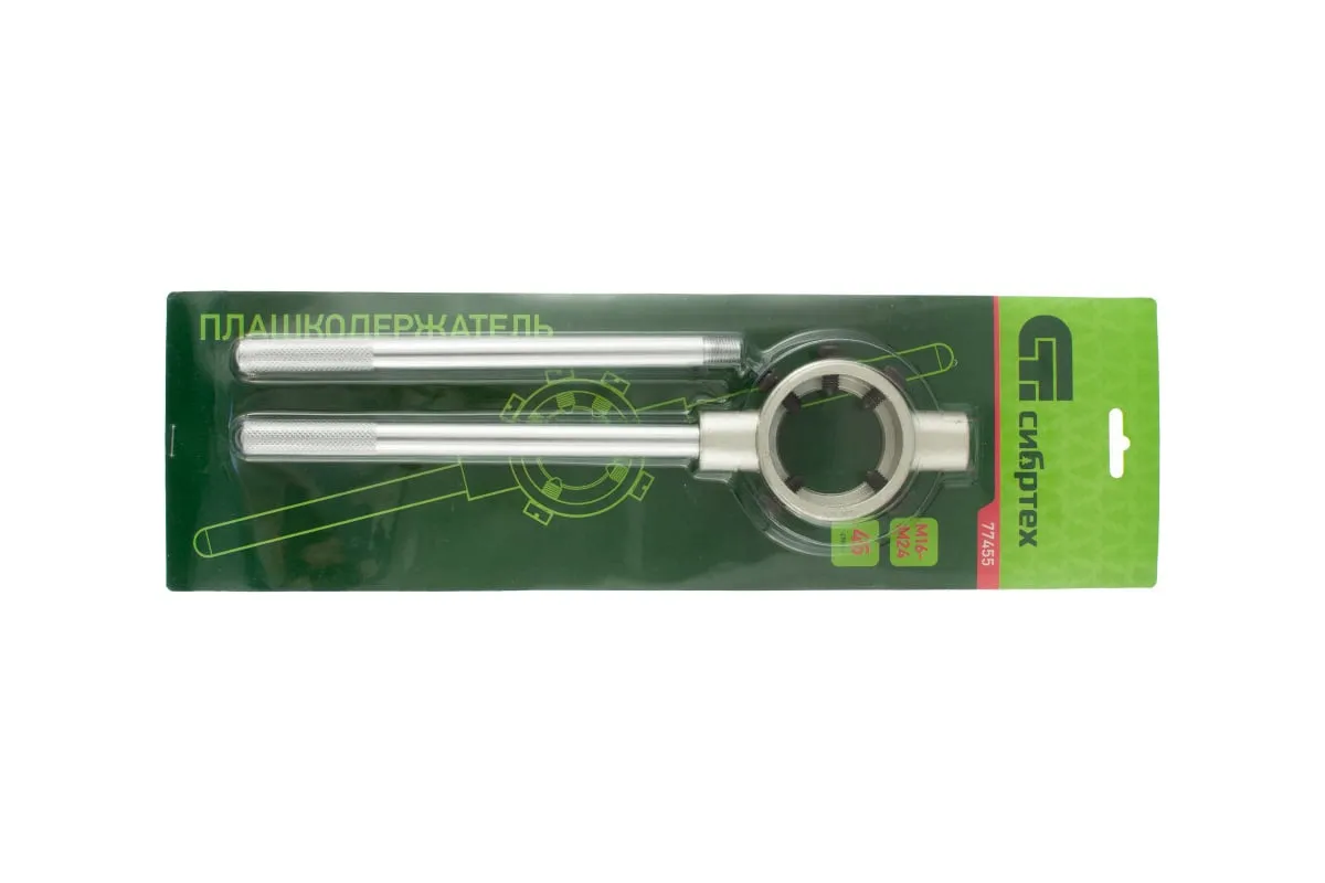 Плашкодержатель М16-24 Сибртех 77455 предназначен для фиксации плашек при нарезке резьбы. Используется для плашек с диаметром 55 мм и диаметром резьбы М16-M24. Изготовлен из углеродистой стали 45 и оснащен стопорными винтами для лучшей фиксации.