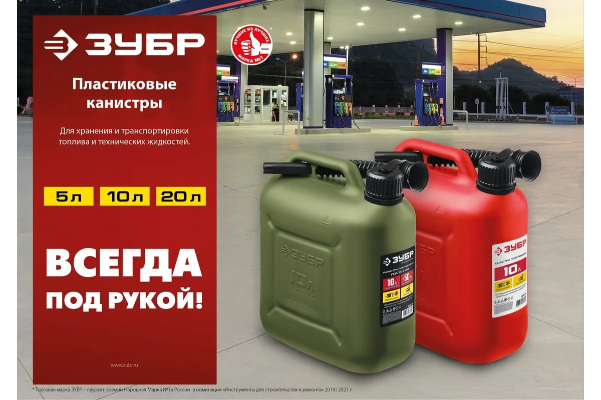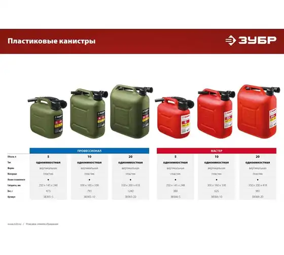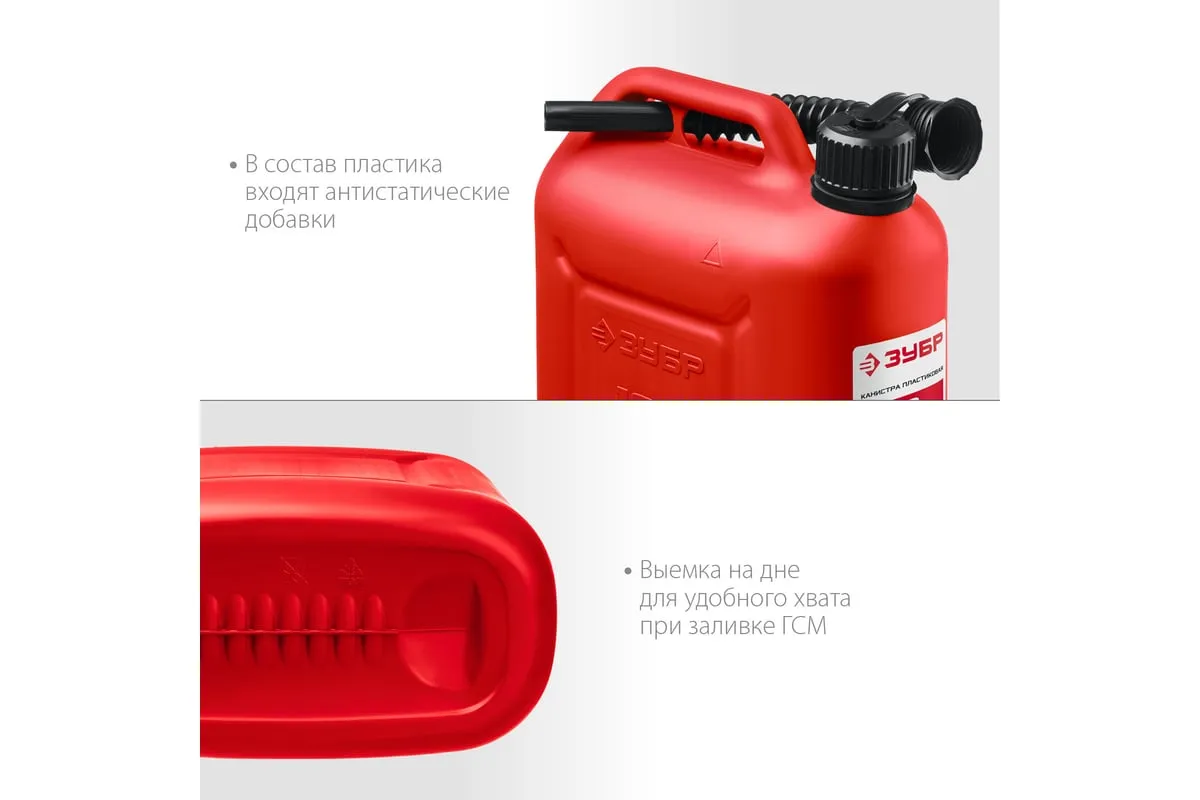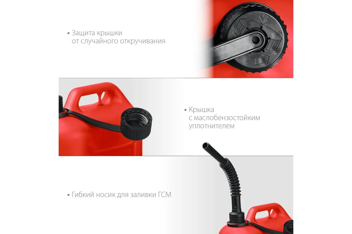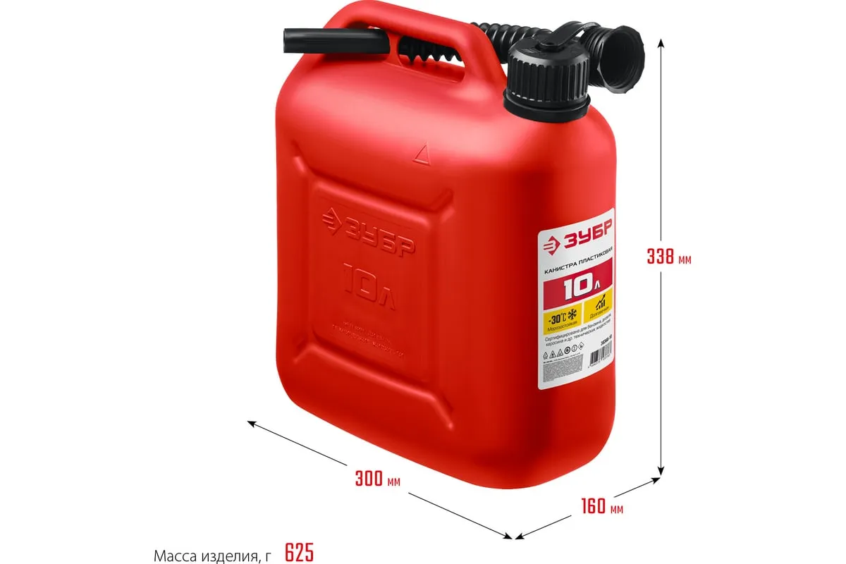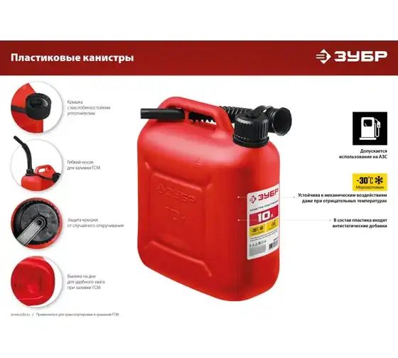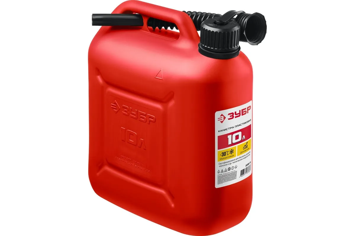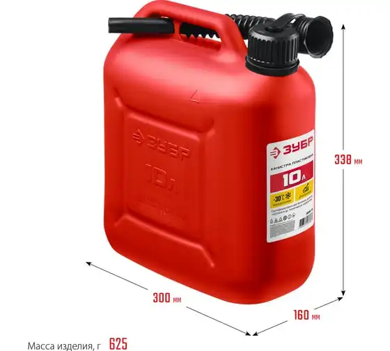 Пластиковая канистра ЗУБР 10 л 38366-10 - легкая герметичная емкость для транспортировки технических жидкостей. Применяется для транспортировки и хранения ГСМ.
