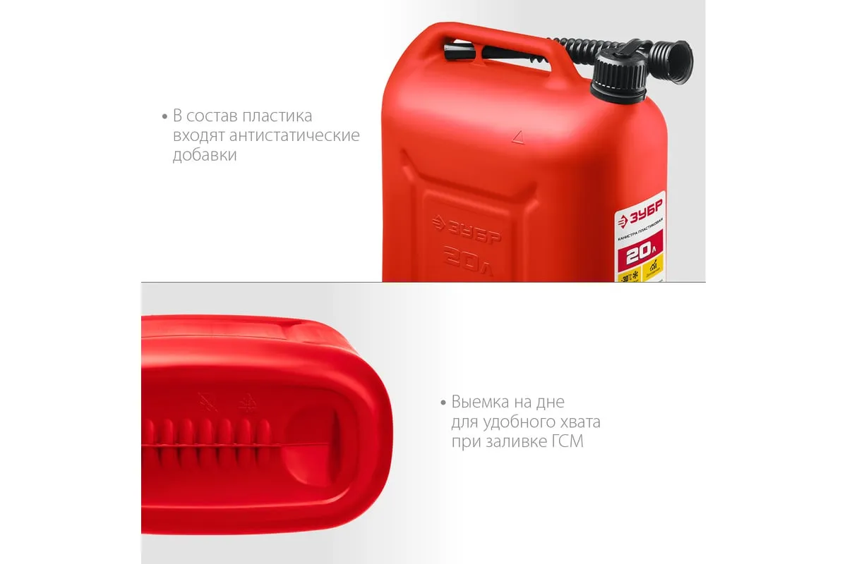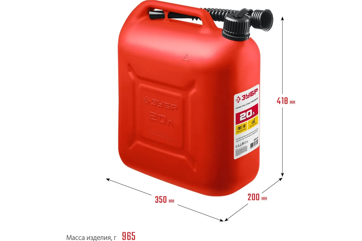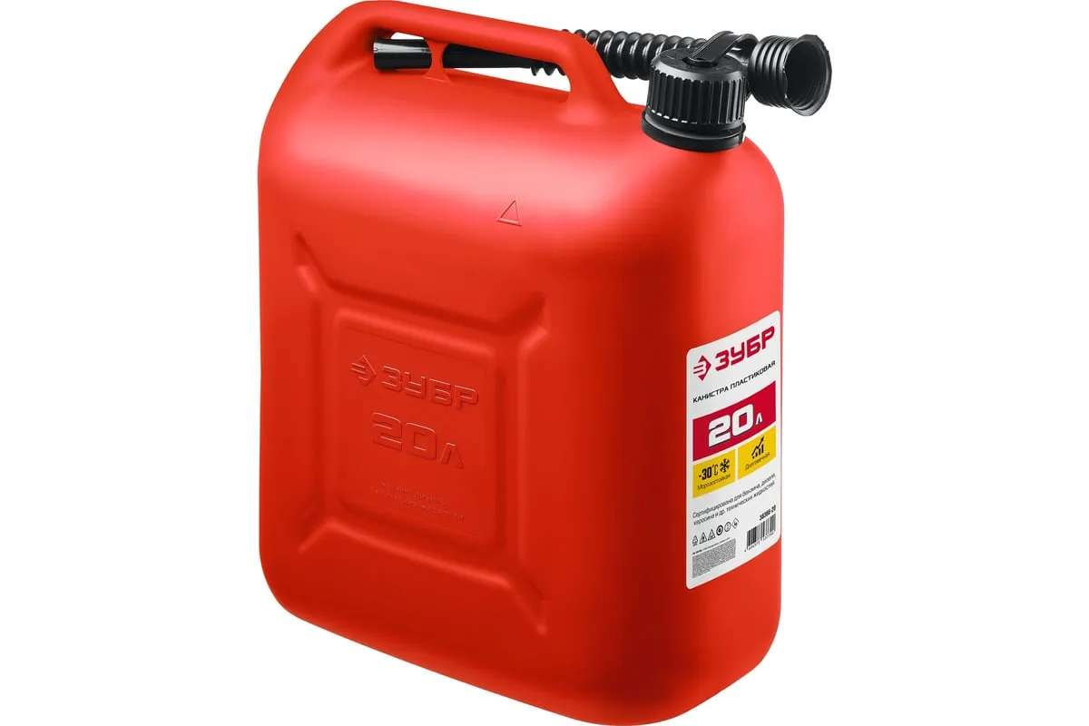 Пластиковая канистра ЗУБР 20 л 38366-20 - легкая герметичная емкость для транспортировки технических жидкостей.