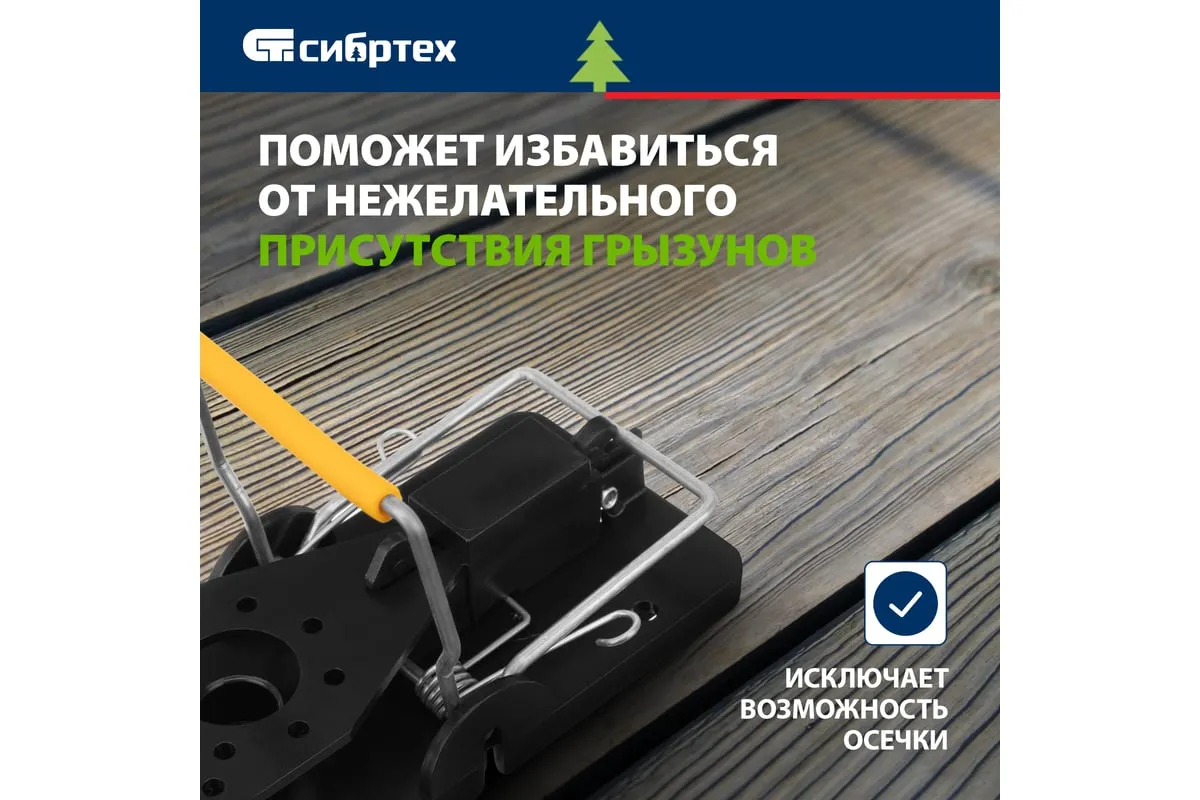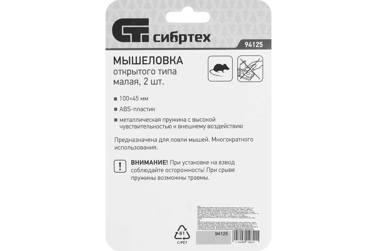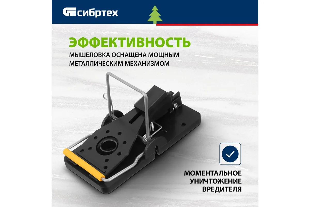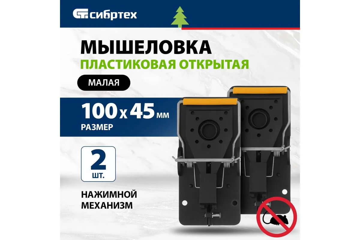 Пластиковая открытая мышеловка СИБРТЕХ металлический механизм, малая, 2 шт. 94125 предназначена для ловли и уничтожения мелких грызунов. Имеет чувствительный механизм, который повышает эффективность устройства. Мышеловка удобна и проста в использовании.