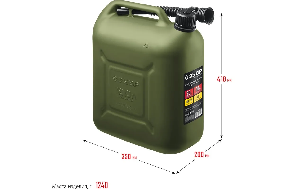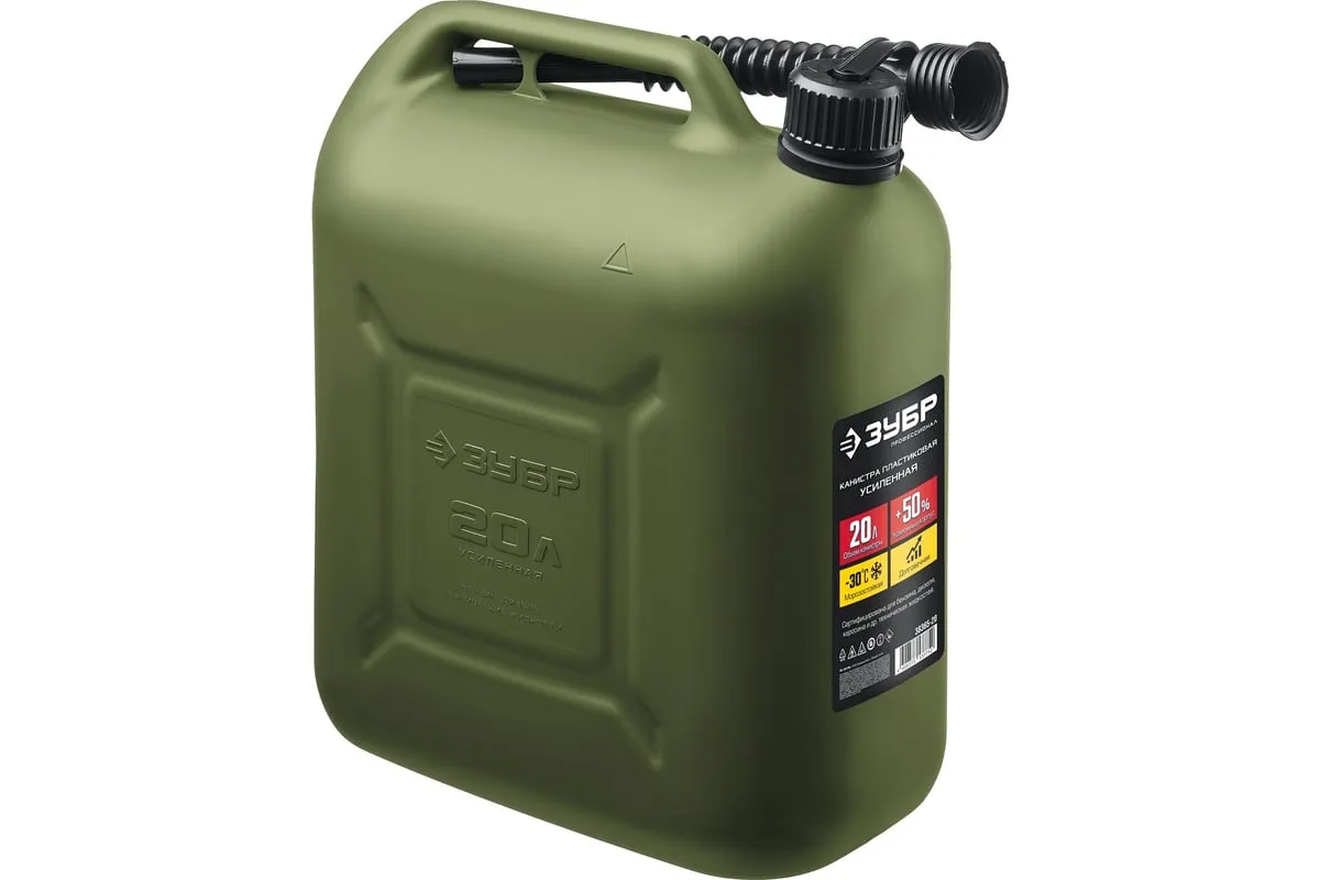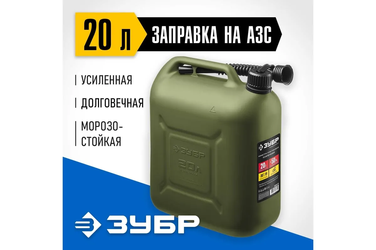 Пластиковая усиленная канистра ЗУБР Профессионал 20 л 38365-20 - легкая герметичная емкость для транспортировки технических жидкостей. Применяется для транспортировки и хранения ГСМ.