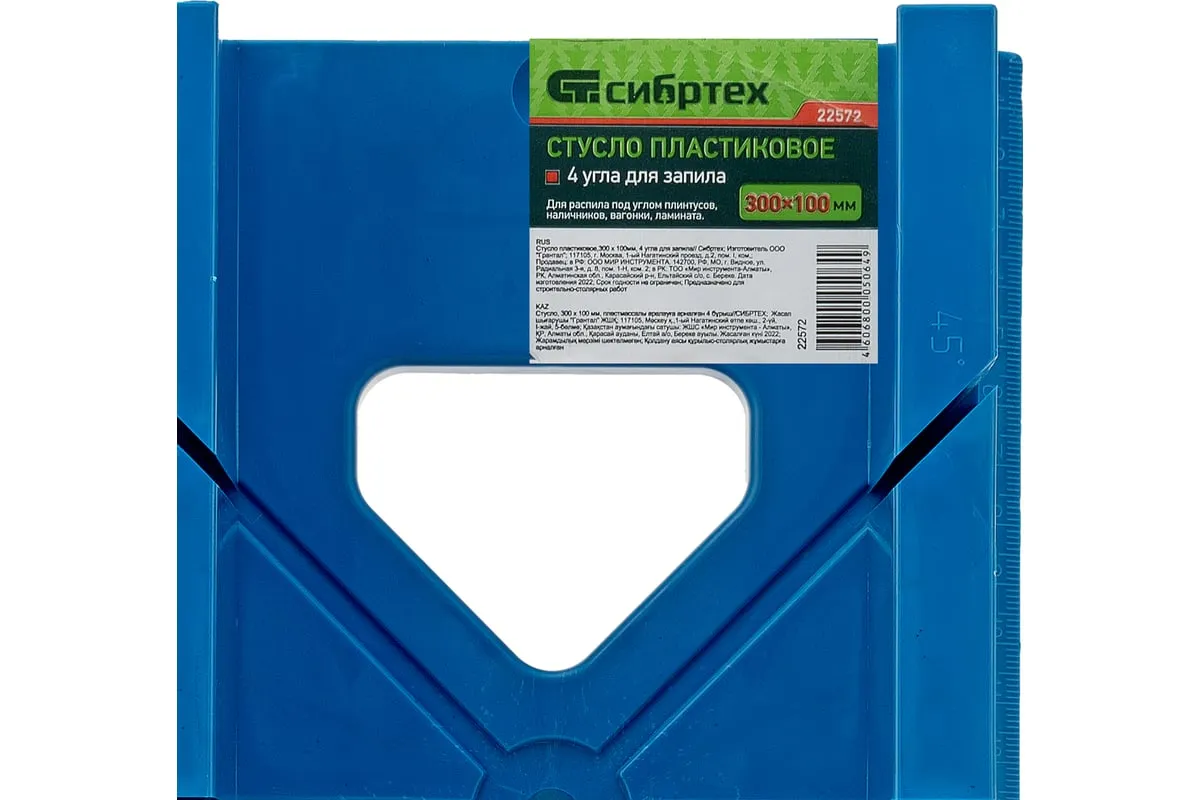 Пластиковое стусло Сибртех 22572 300 х 100 мм обеспечивает 4 угла для запила материалов: вертикального под углами 45/90/135 градусов и горизонтального по углом 45 градусов. Со стуслом легко формировать внутренние и наружные углы при монтаже плинтусов, наличников и других отделочных элементов. Точный распил позволяет добиться плотной стыковки заготовок.