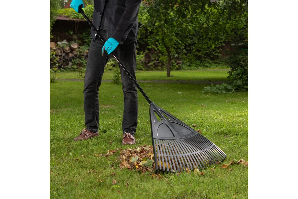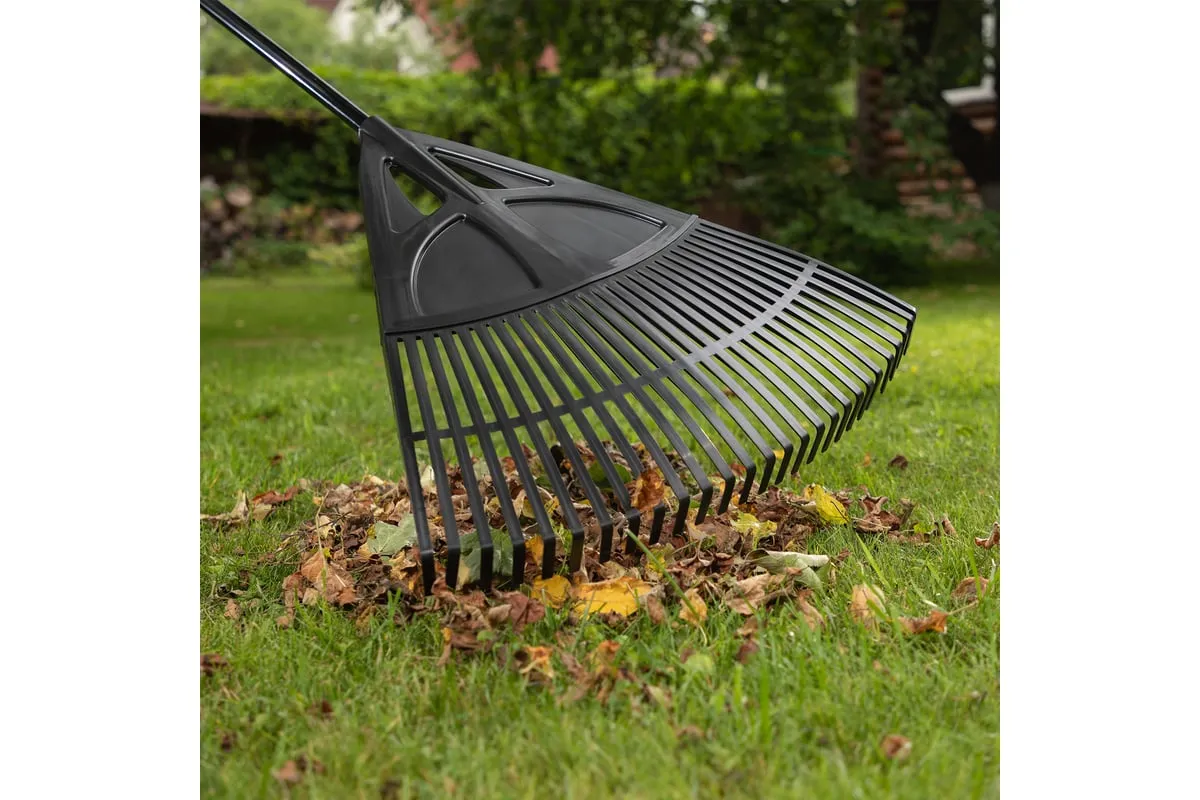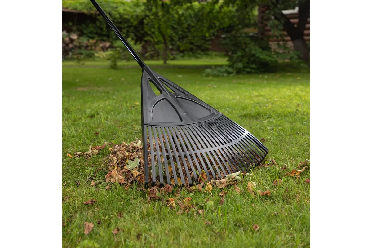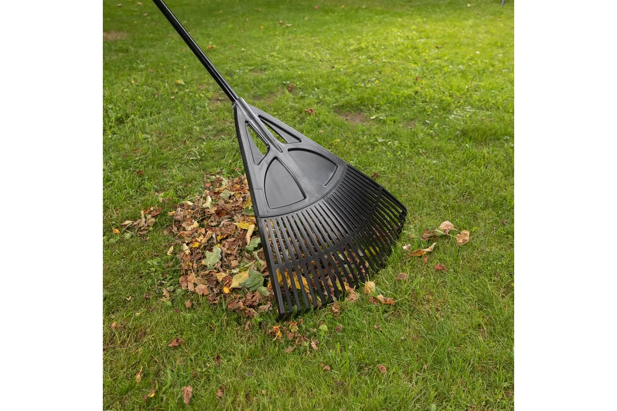 Пластиковые веерные грабли Palisad 61806 длиной 1750 мм, с 27 плоскими зубьями и рабочей частью 620 мм, с алюминиевым черенком, — садовый инвентарь, предназначенный для уборки мелкого мусора и листьев с газонов и грядок. Плоские зубья эффективно собирают мусор, не повреждая растительность. Грабли поставляются в сборе с черенком и полностью готовы к использованию.
