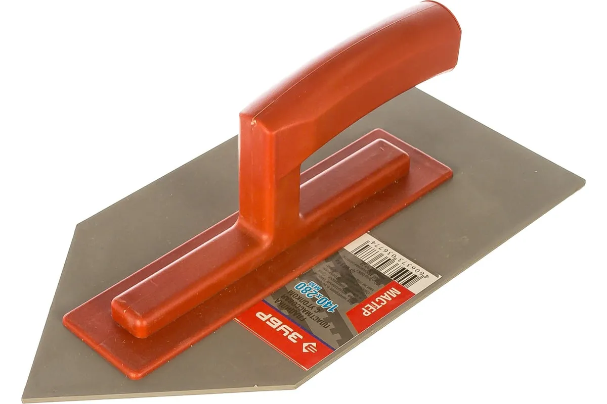Пластмассовая гладилка с уголком Зубр 130x280мм 08145 предназначена для нанесения и распределения различных смесей и растворов на стены, потолки и полы. Данная модель изготовлена из ударопрочного пластика, который обеспечивает высокую эластичность полотна и ручки. Специальная клинообразная форма придает удобство при работе в углах и труднодоступных местах.