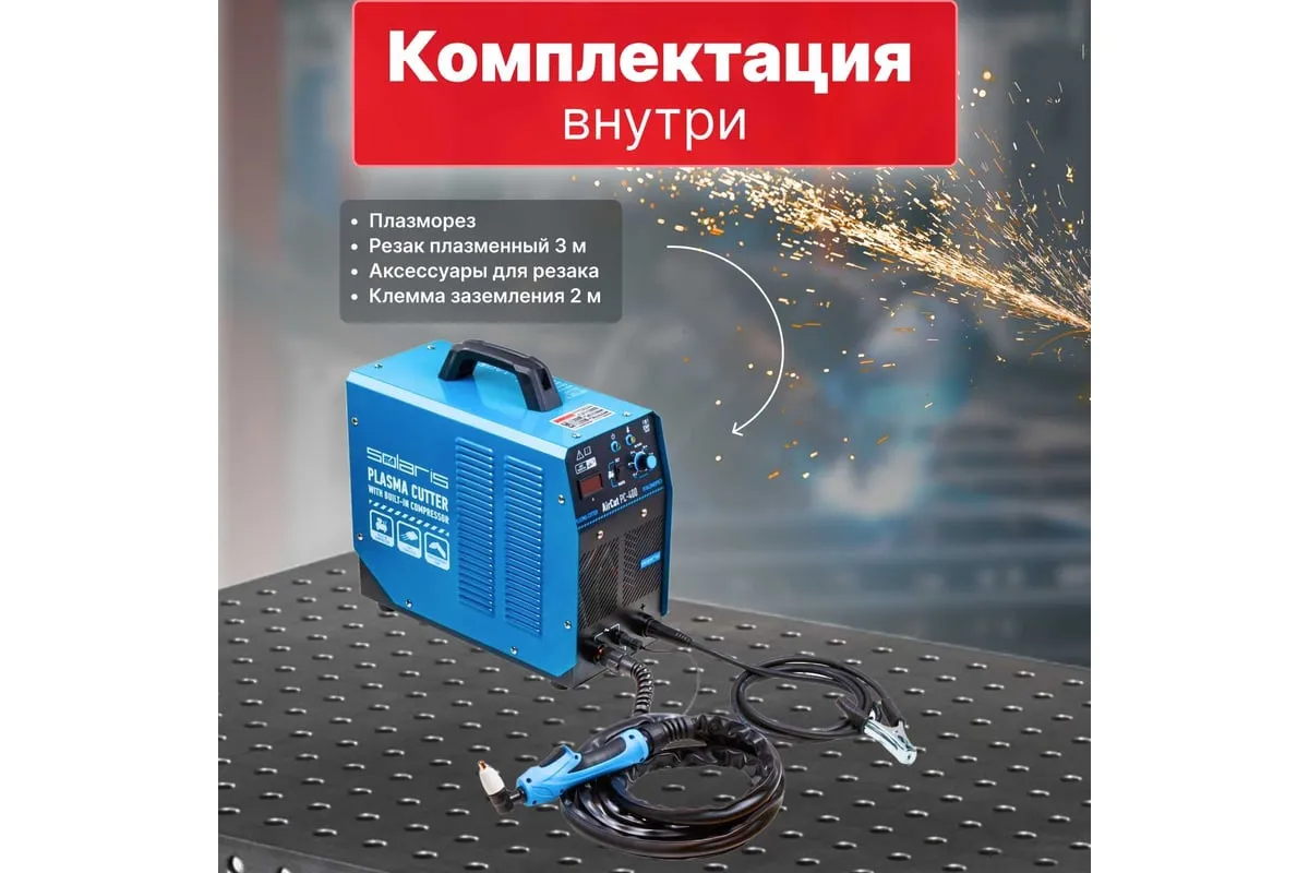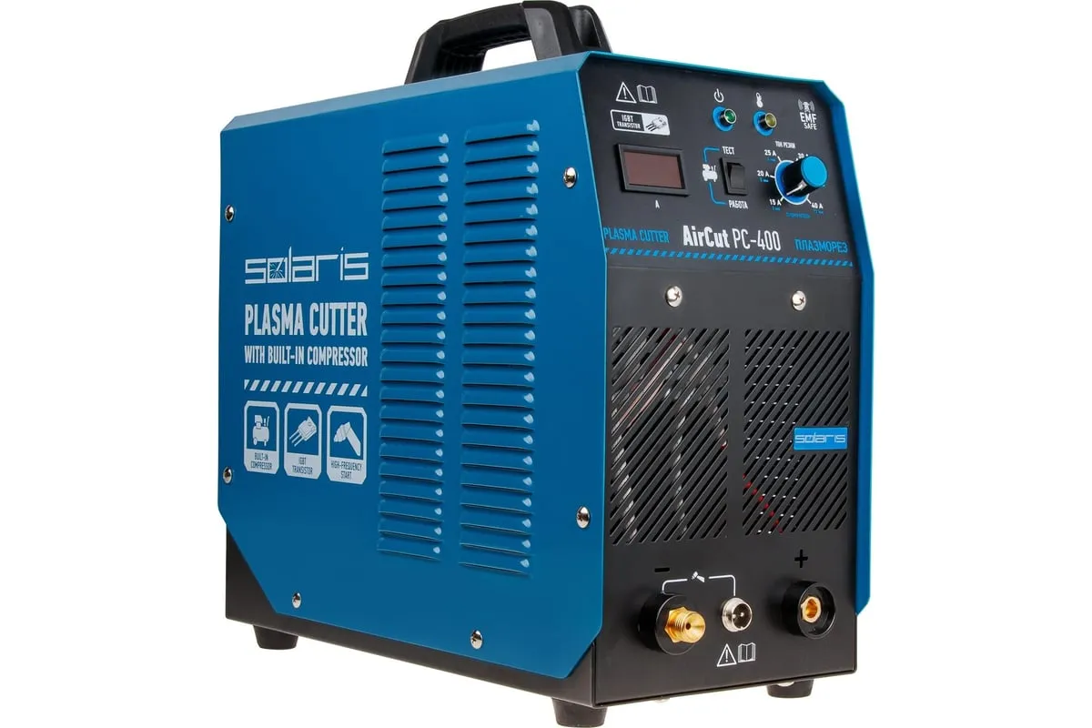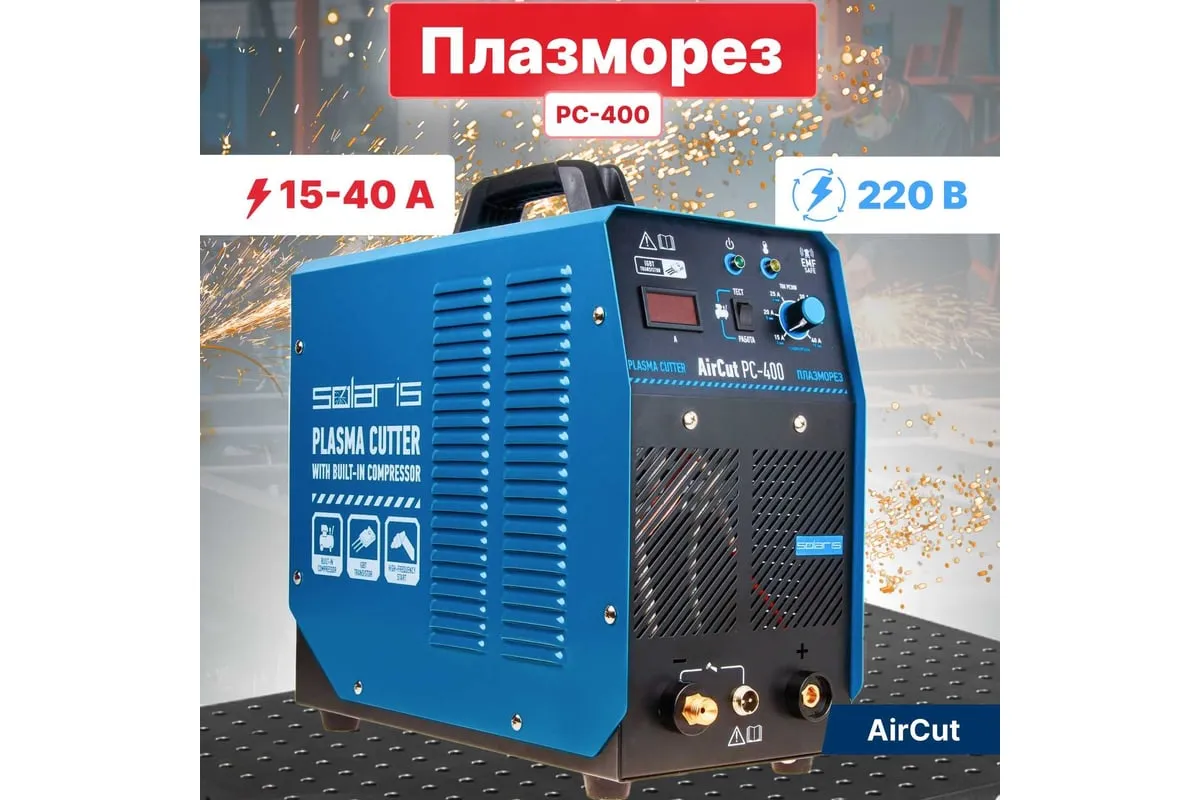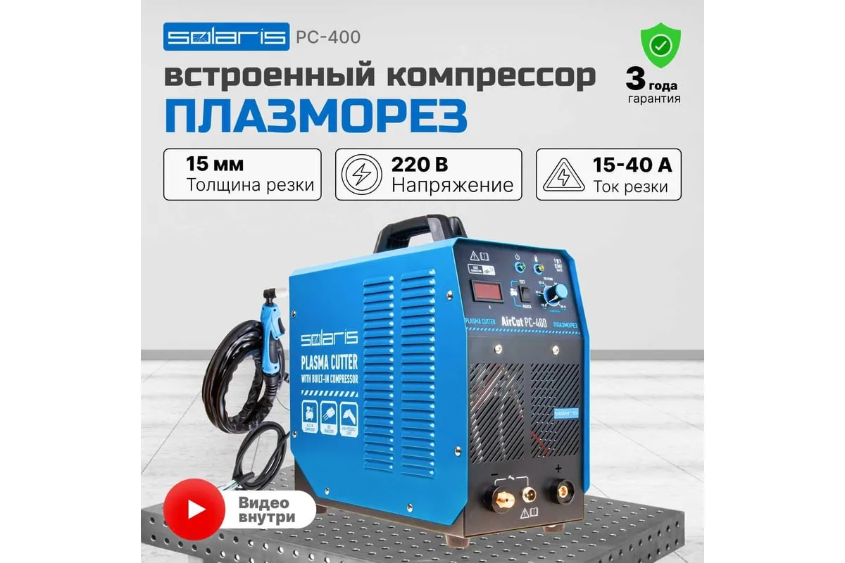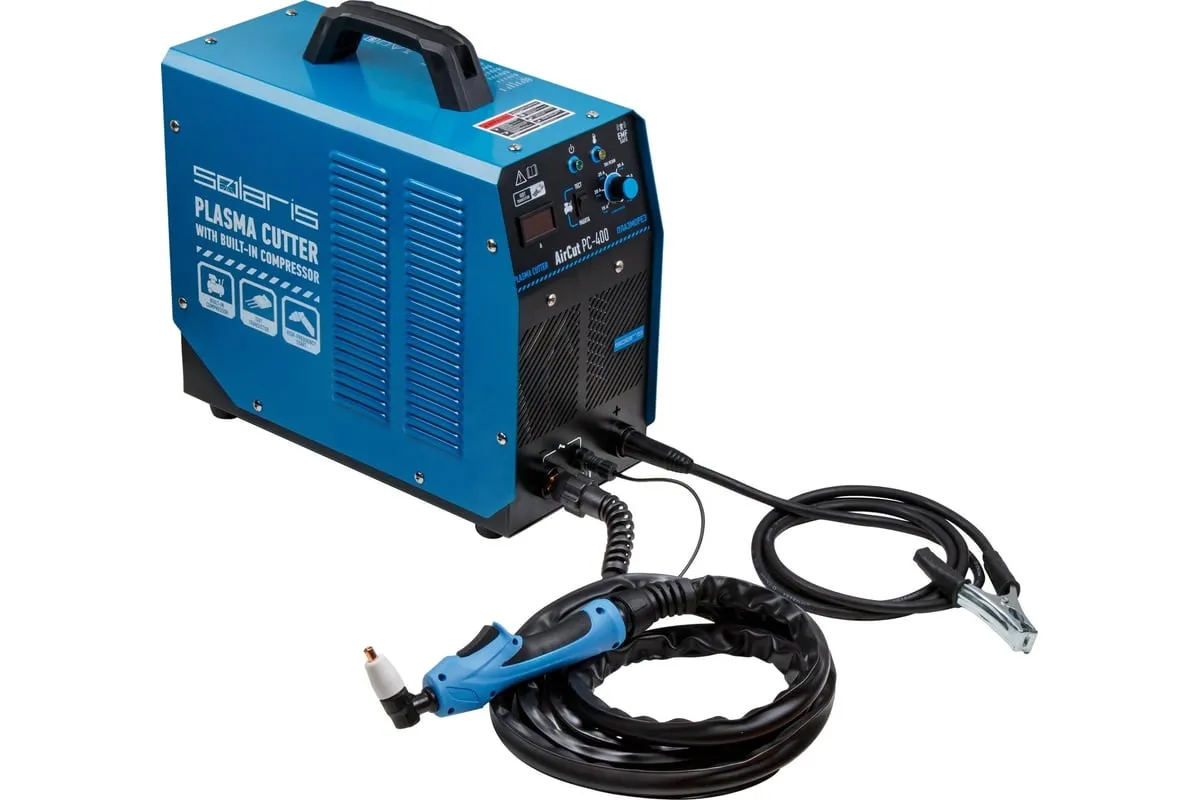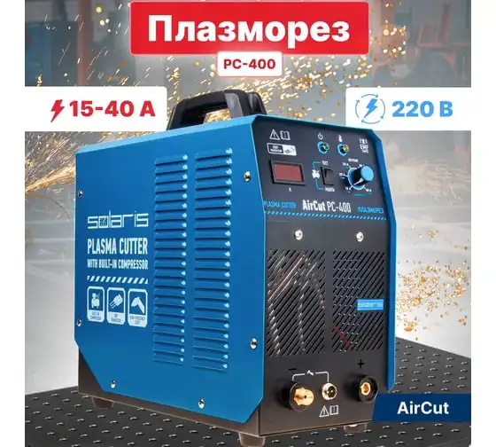 Плазморез SOLARIS AirCut PC-400 представляет собой компактный инверторный аппарат плазменный резки для выполнения раскроя металла. Широко применяется для проведения демонтажных работ в различных сферах (производство, мастерские, ангары, здания, частные хозяйства). Аппарат имеет встроенный воздушный компрессор, поэтому не требует подключения к внешнему компрессору. Плазморез имеет встроенную защиту от перегрева, а потому безопасен при работе. Внимание! Аппарат поставляется без вилки! Плазморез необходимо оснащать силовой однофазной вилкой 32А 230В.